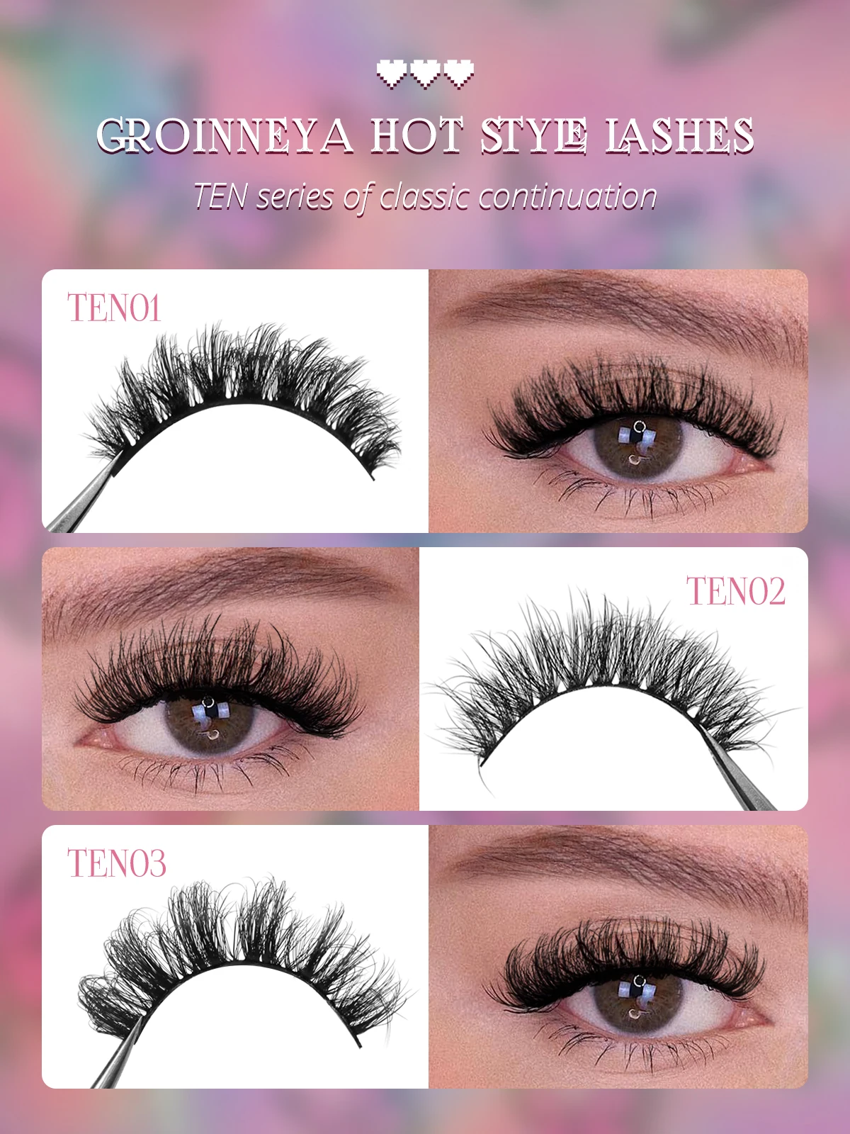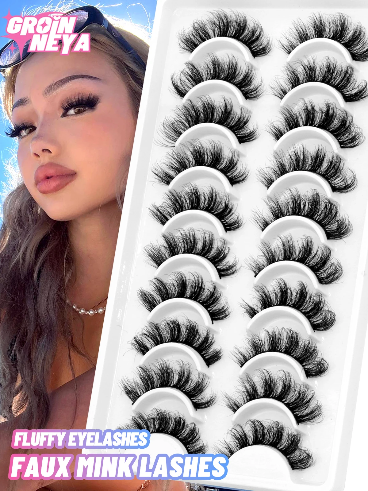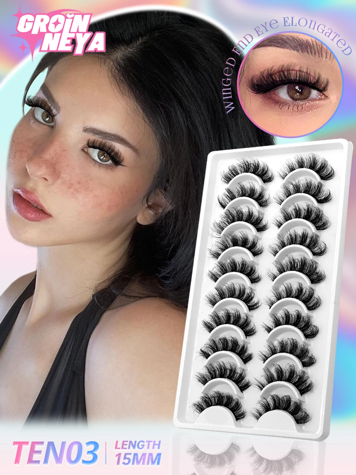 GROINNEYA 10 Pairs Natural False Eyelashes Fake Lashes Long Makeup 3d Mink Lashes Extension Eyelash Mink Eyelashes for Beauty