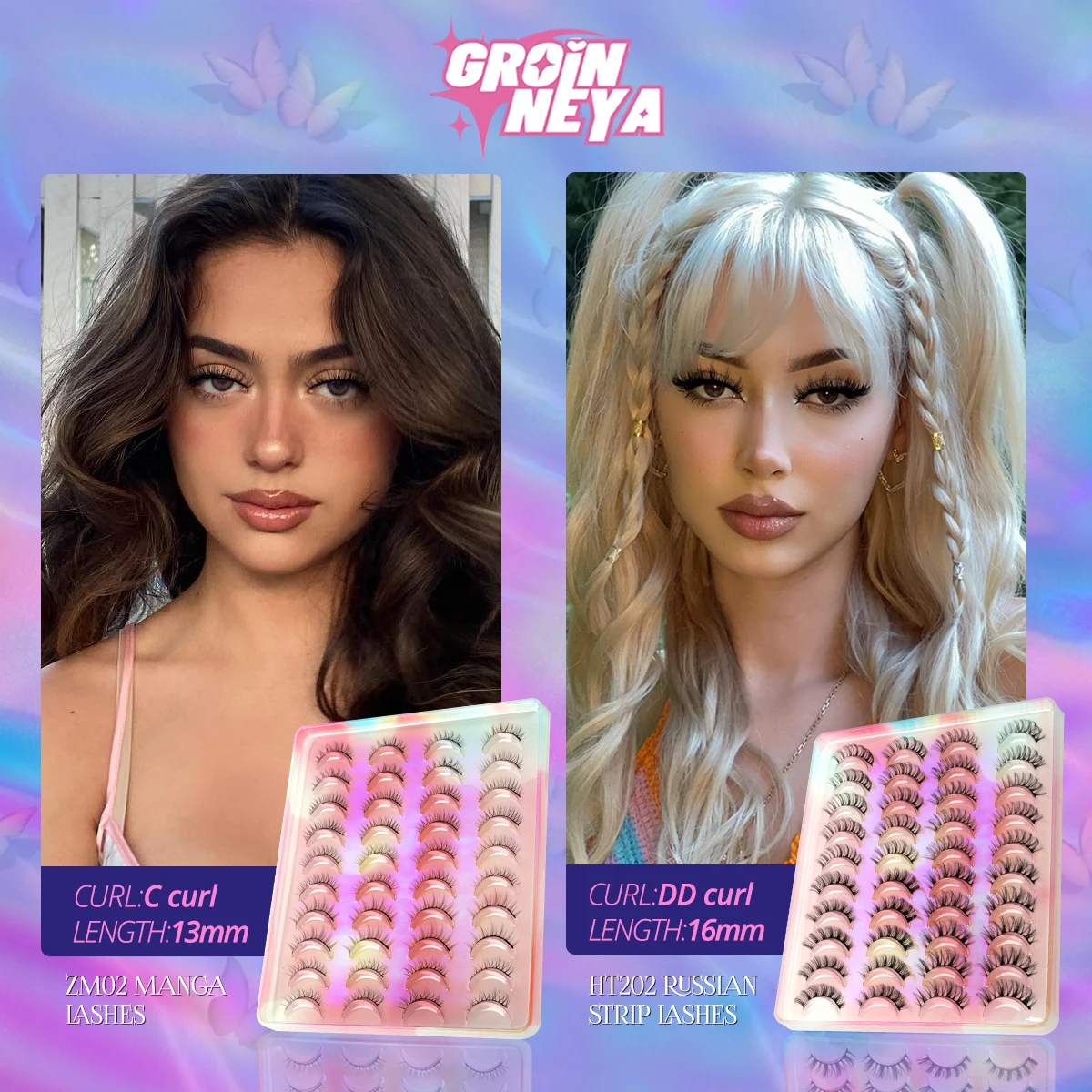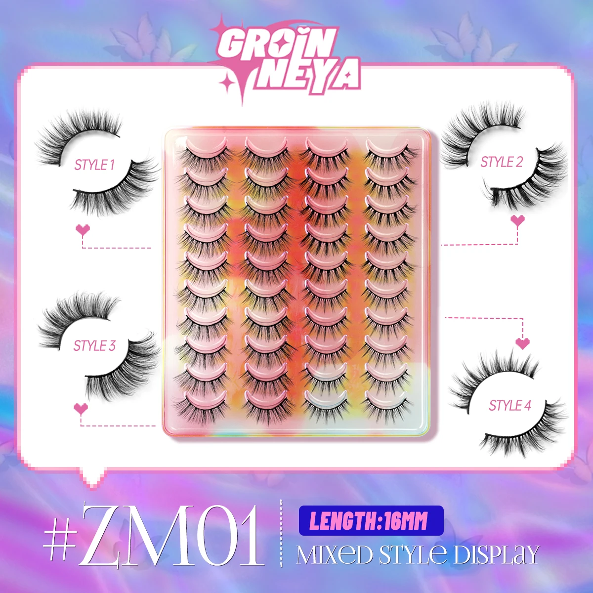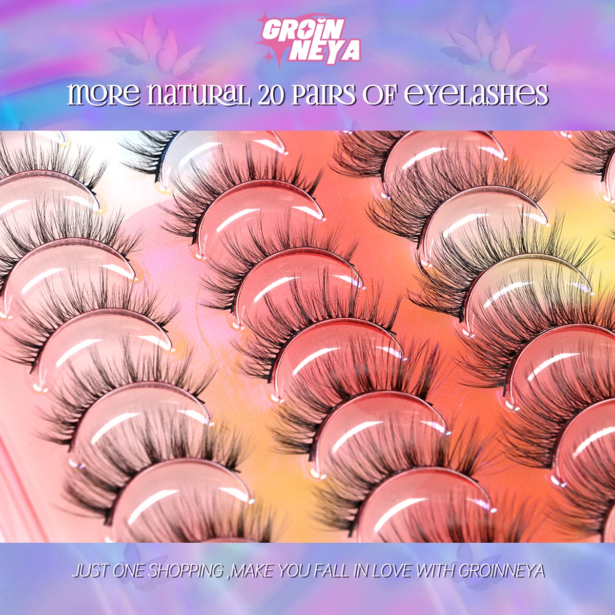 GROINNEYA 20 pairs Eyelashes Natural False Lashes 3D Manga Lashes y2k Winged Natural Realistic Cat Eye Eyelash Extension