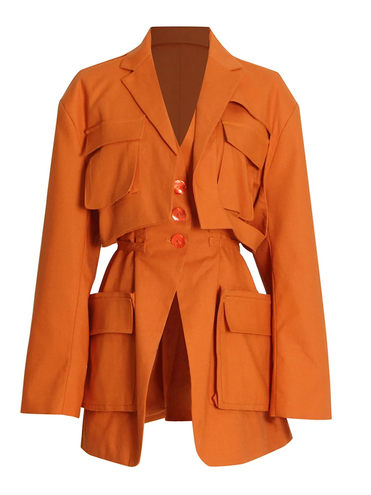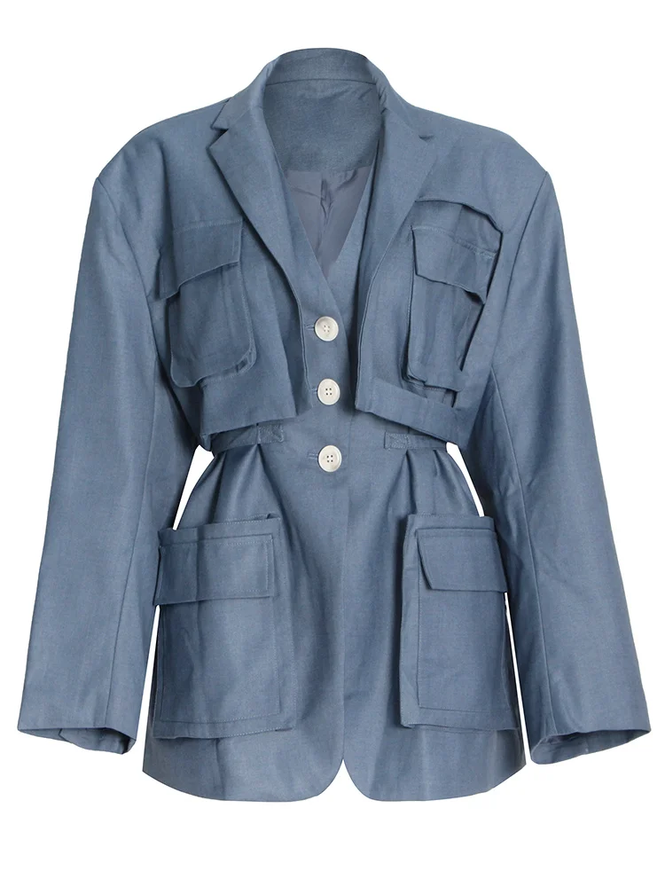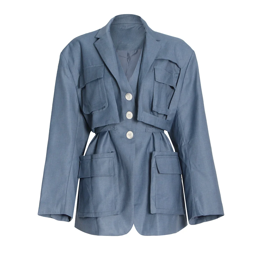 GYMAMAZES High Street Blazer For Women Notched Collar Long Sleeve Patchwork Pockets Coats Female Spring Clothing Style New 2022