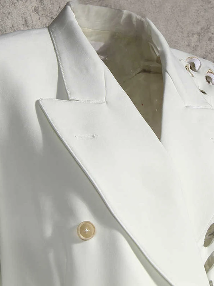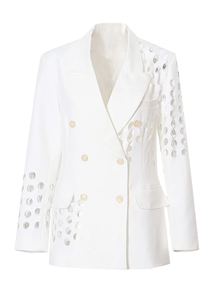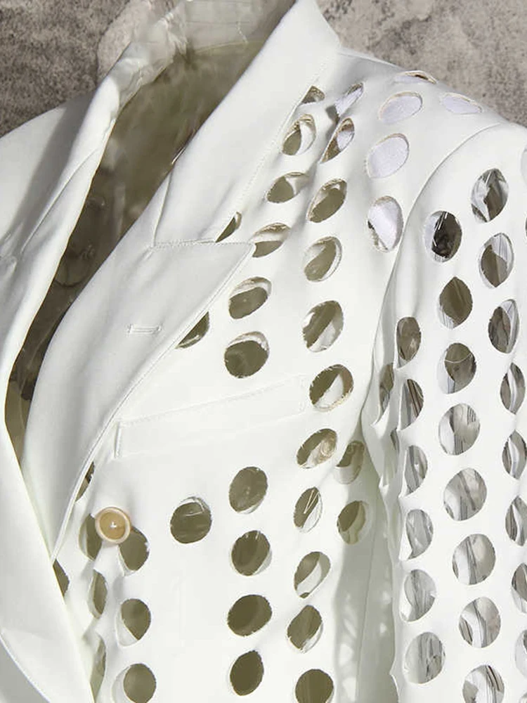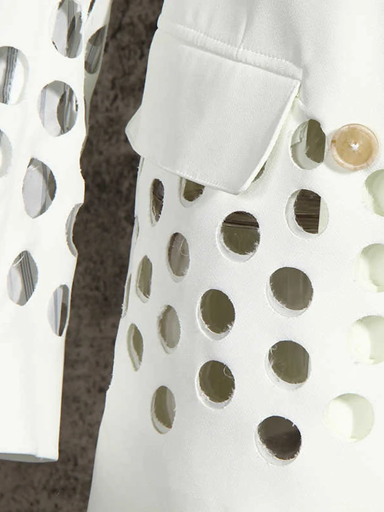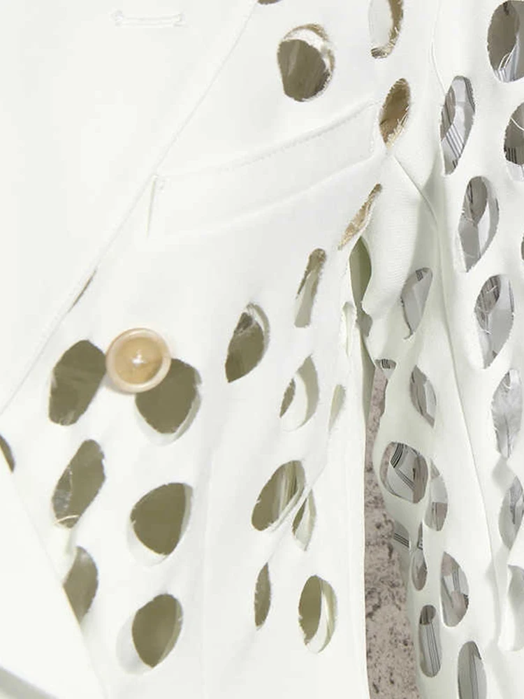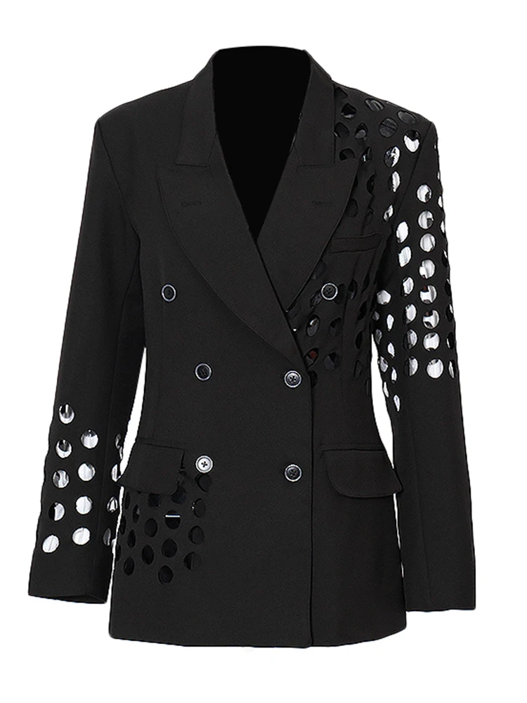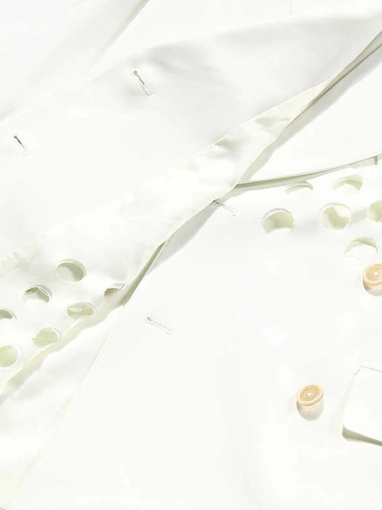GYMAMAZES Hollow Out Loose Blazer For Women Notched Collar Long Sleeve Fashion Casual Solid Blazers Female Autumn 2022 Style New