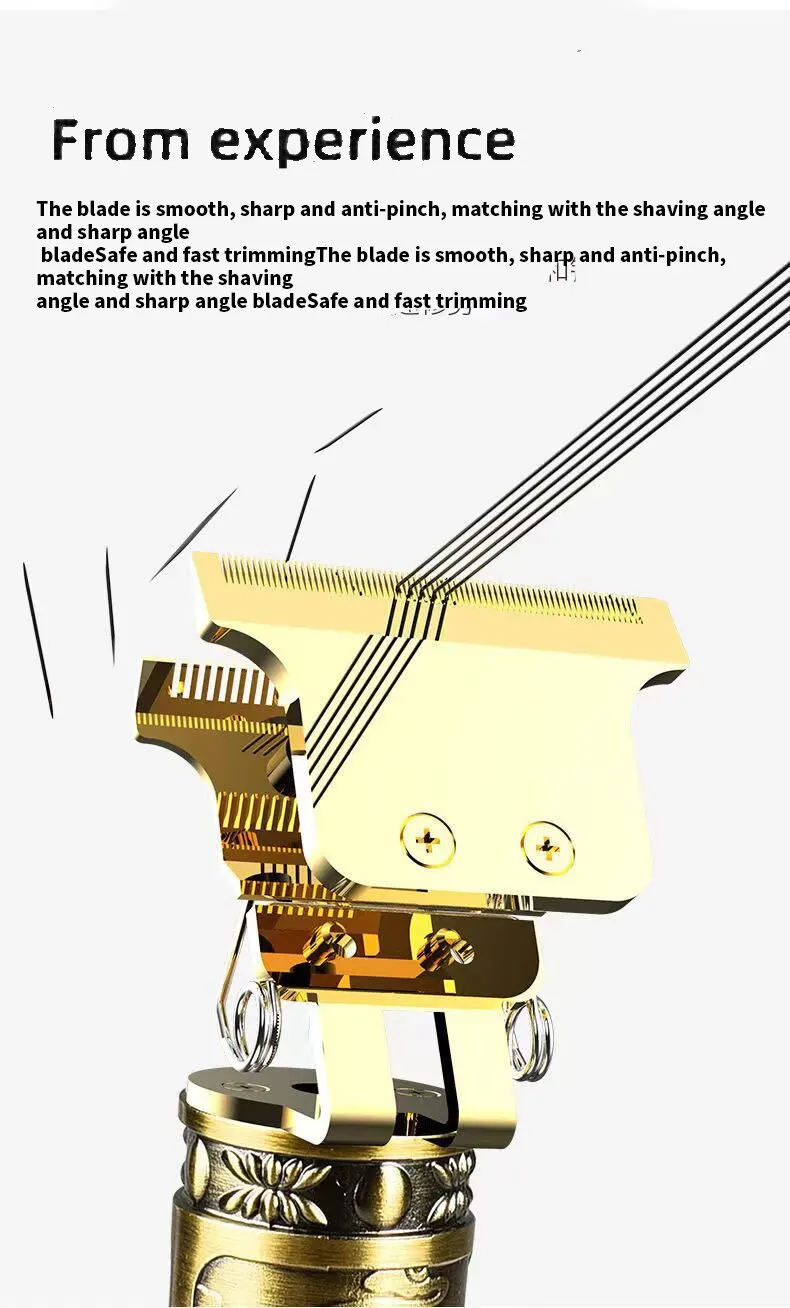 Description: color: gold, description: all-steel design, sharpener and sharper, can quickly shave the bald head, trim the oil head and gradually hair style