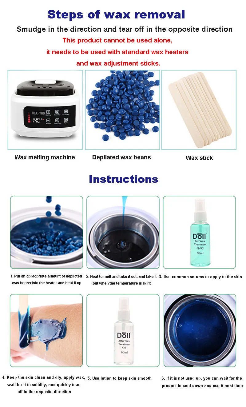 3. No depilatory paper are required, heating the wax bean and using the spatula apply the wax on skin directly, very convenient to use.