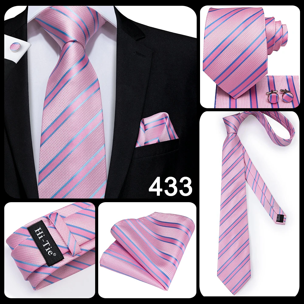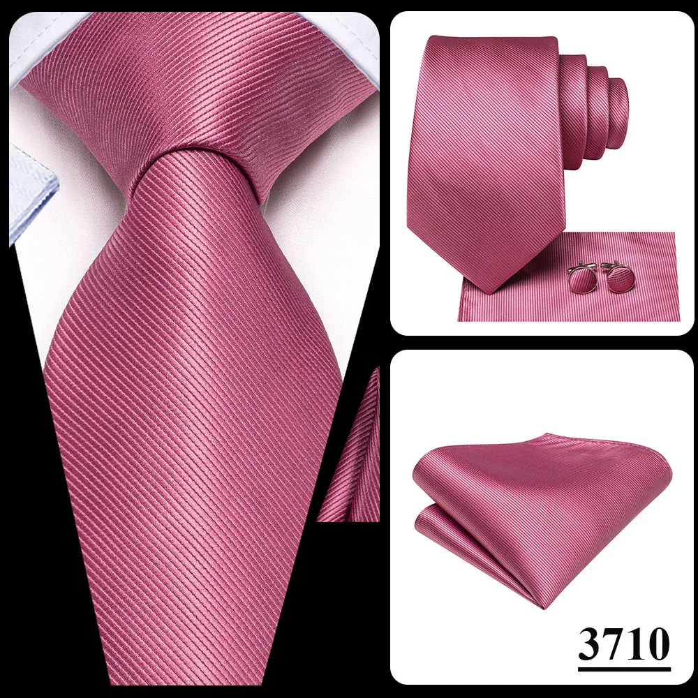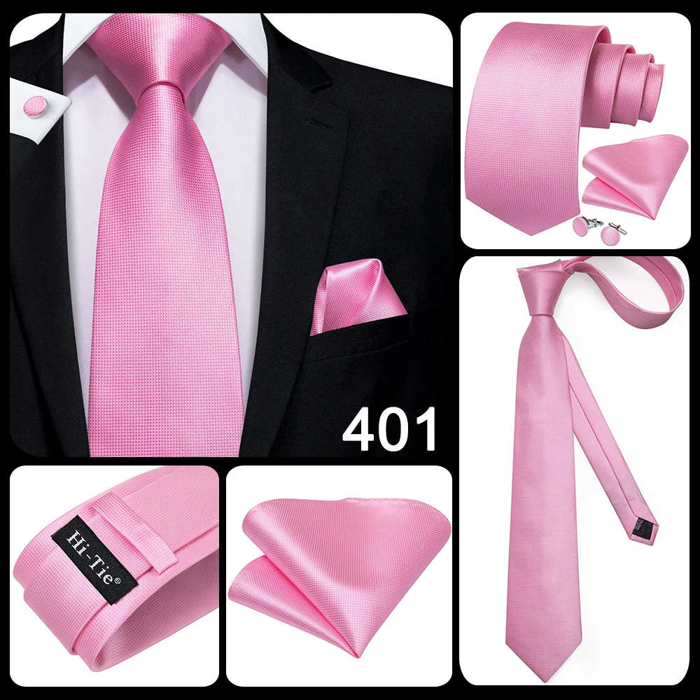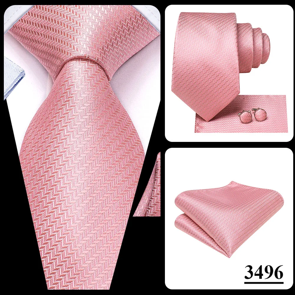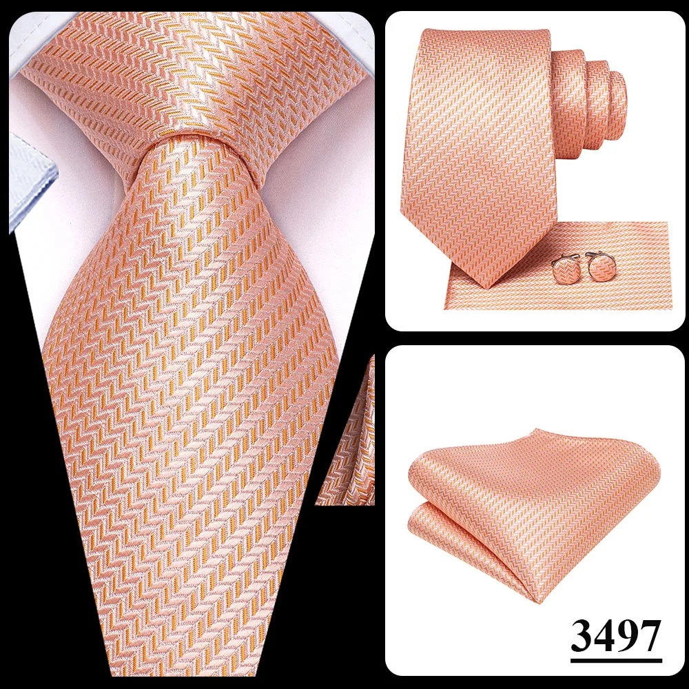 Hi-Tie Silk Mens Wedding Tie Peach Pink Solid Gift Necktie For Men Fashion Design High Quality Hanky Cufflink Set Business Party