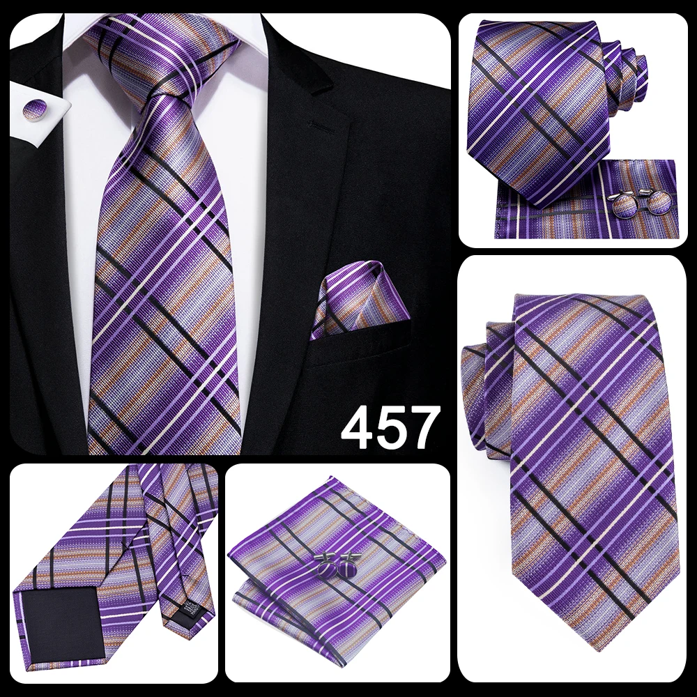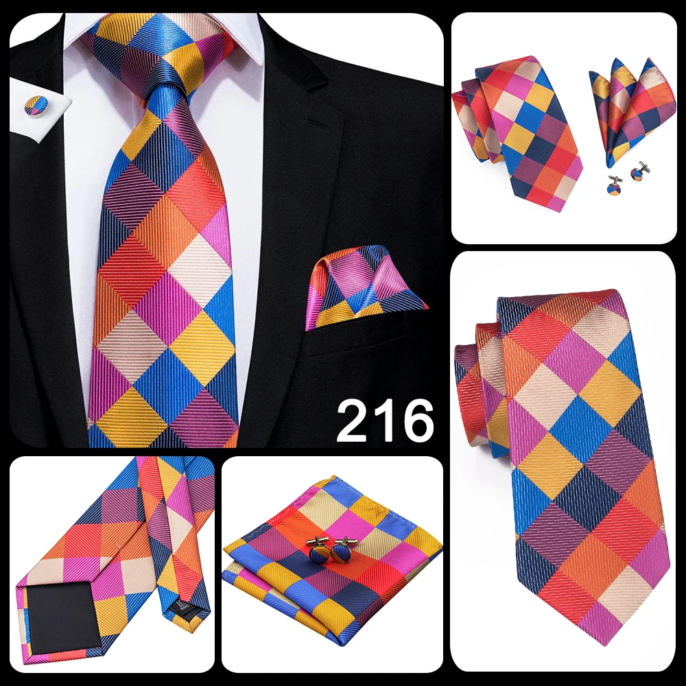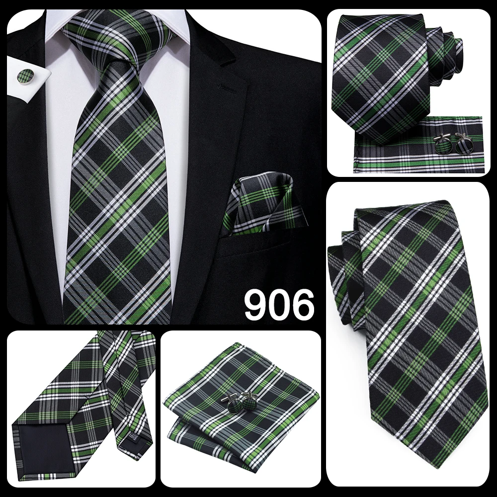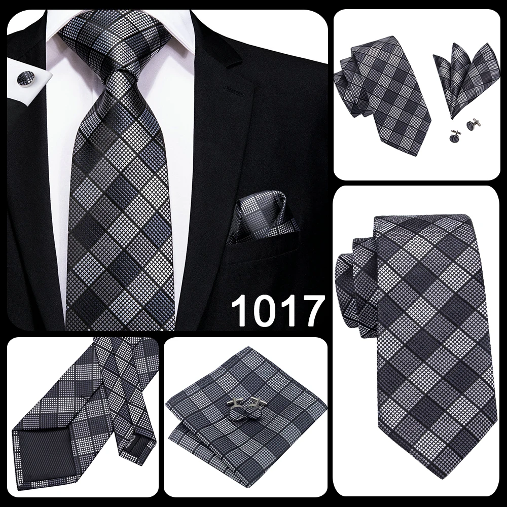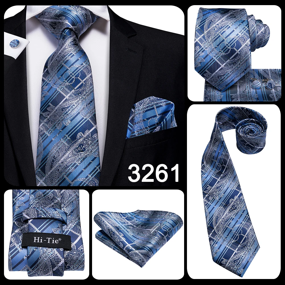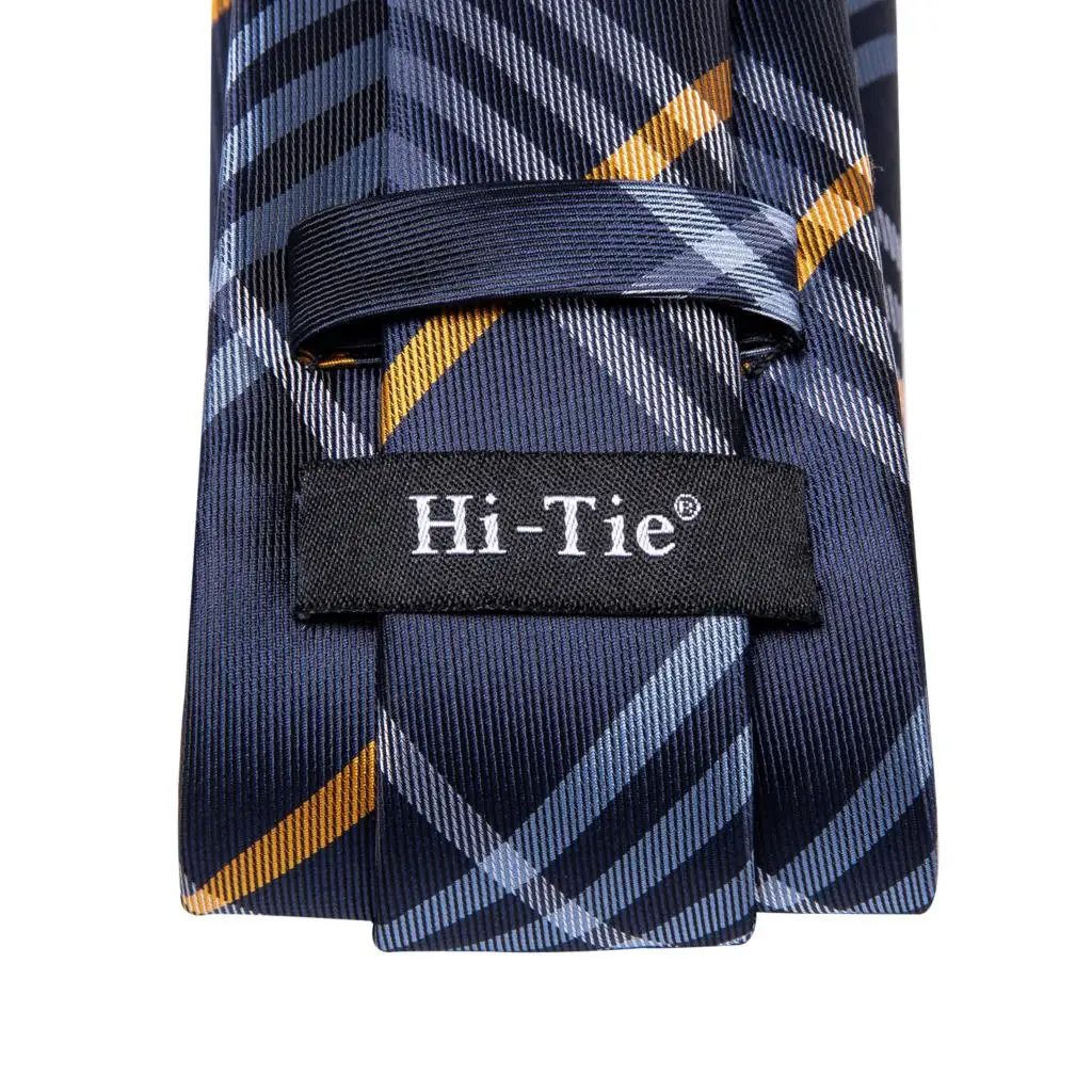 Hi-Tie Silk Wedding Tie For Men Blue White PlaidHandky Cufflink Set Fashion Designer Necktie For Men Business Party