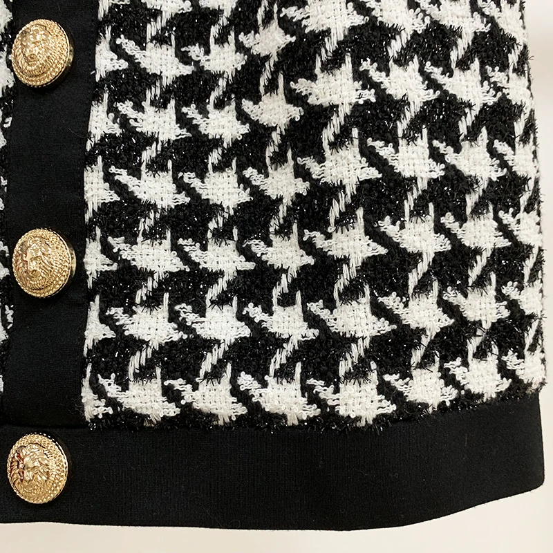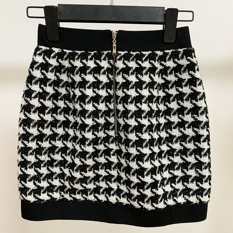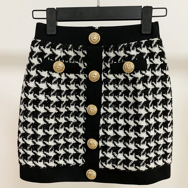 HIGH QUALITY Newest 2023 Designer Skirt Women's Lion Buttons Shimmer Tweed Houndstooth Mini Skirt