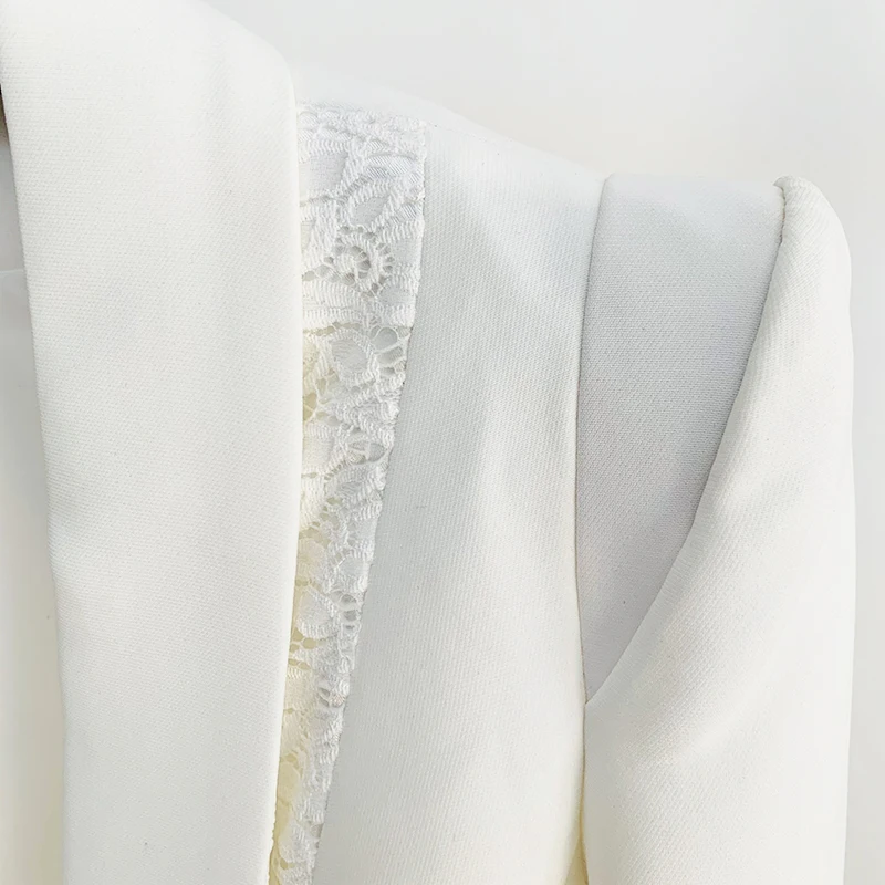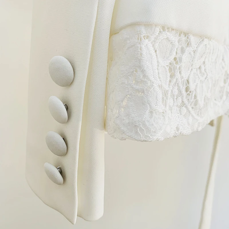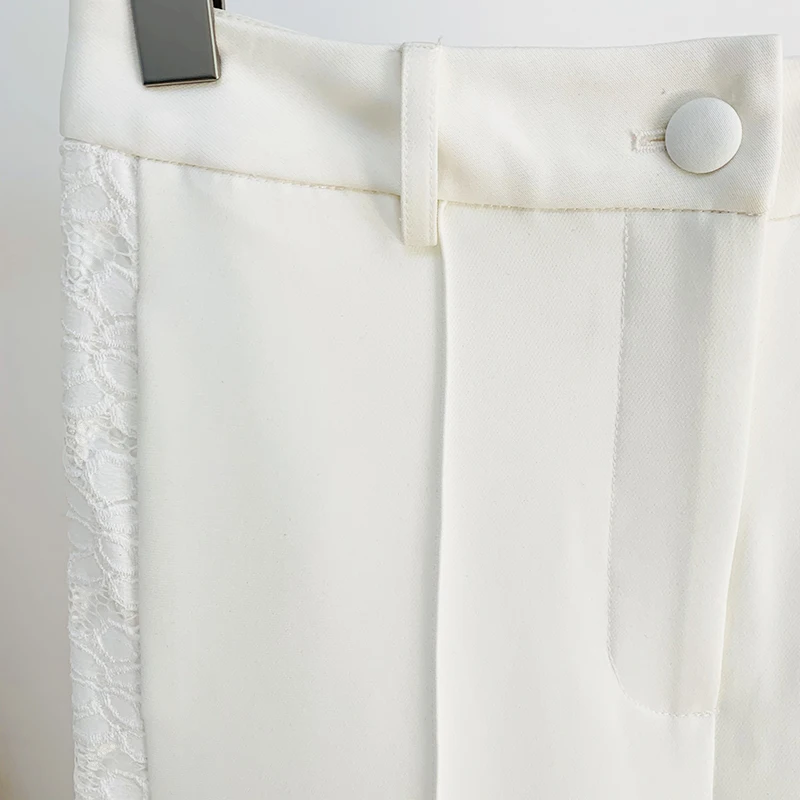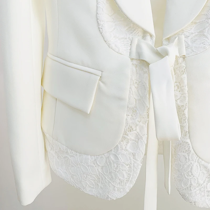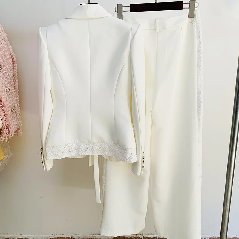 HIGH QUALITY Newest 2023 Fashion Designer Suit Set Women's Shawl Collar Lacing Belt Lace Patchwork Blazer Wide Leg Pants Suit