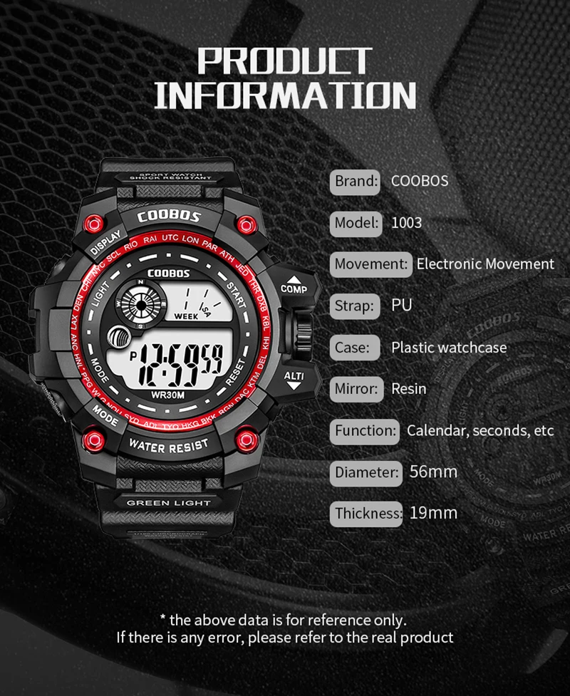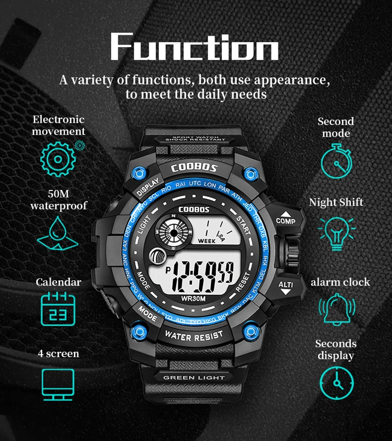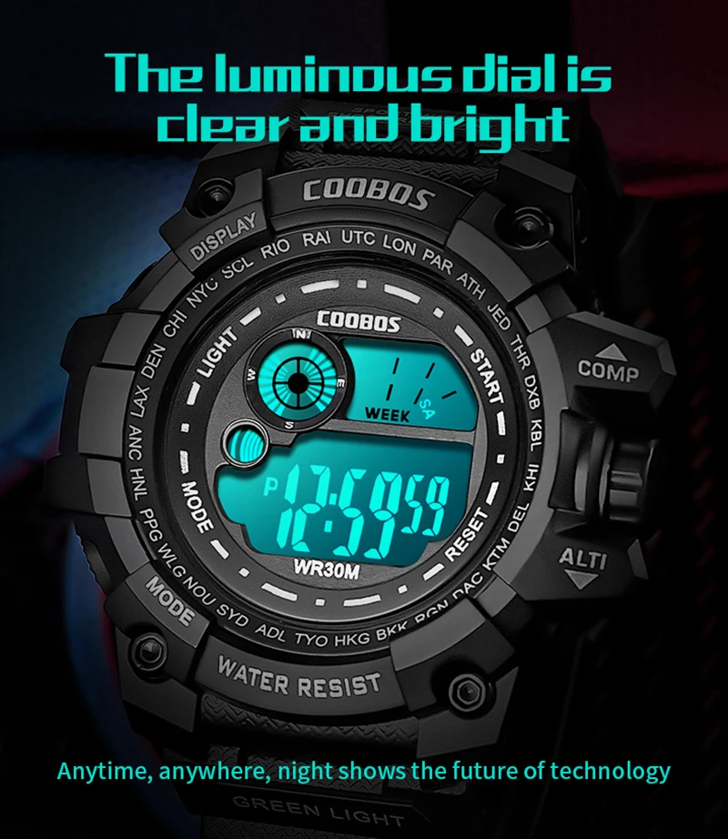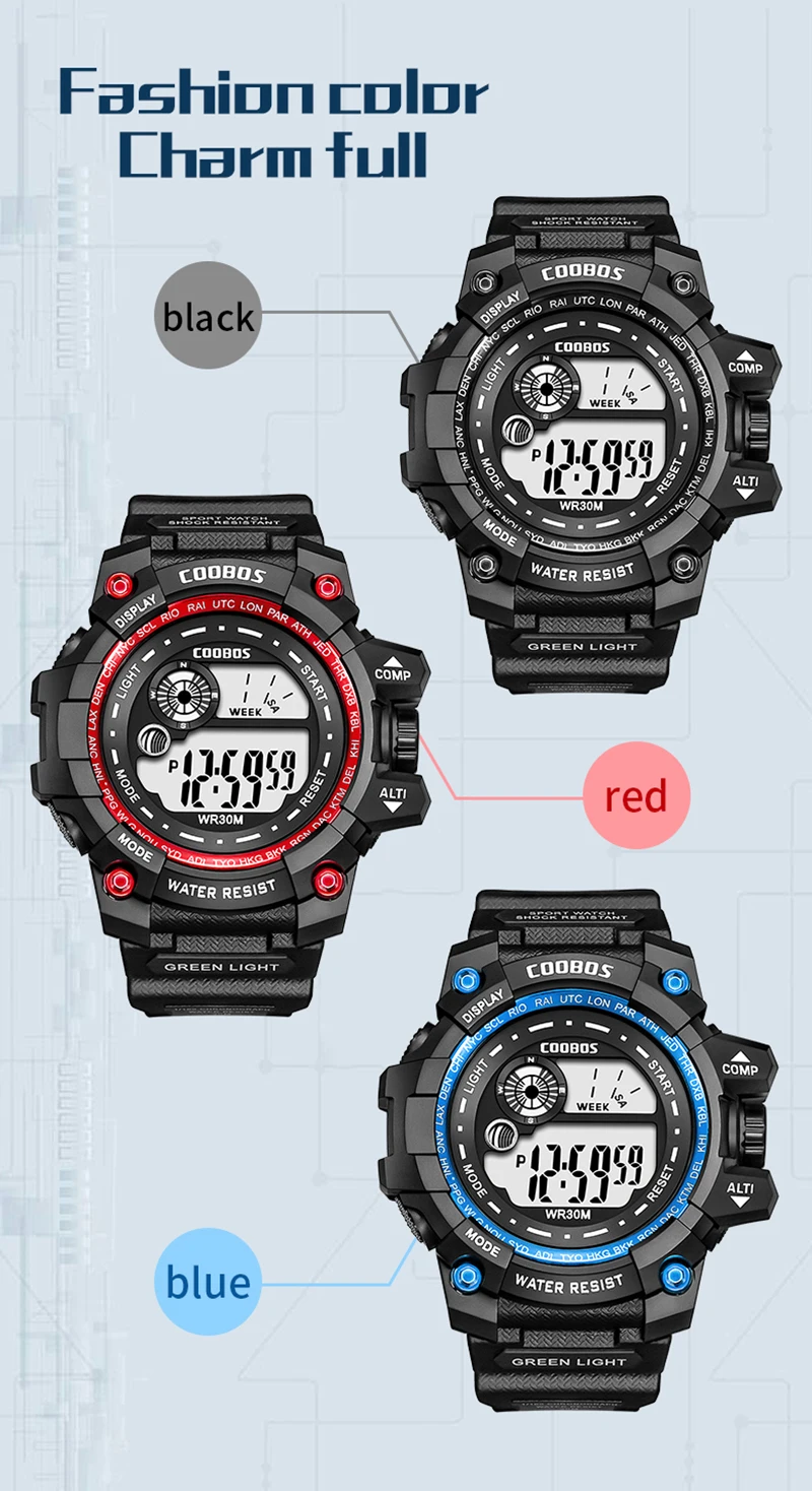 High Quality Sports Kids Boys Watches Waterproof Led Cool Luminous Digital Watch Men's Alarm Stop Watch Week Display Clocks New