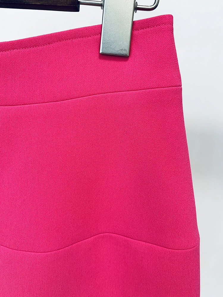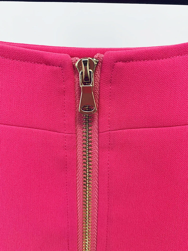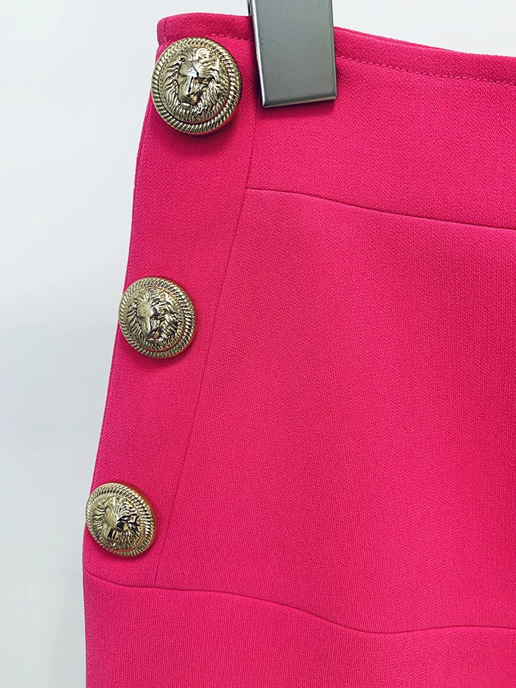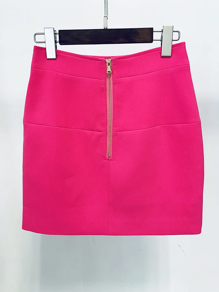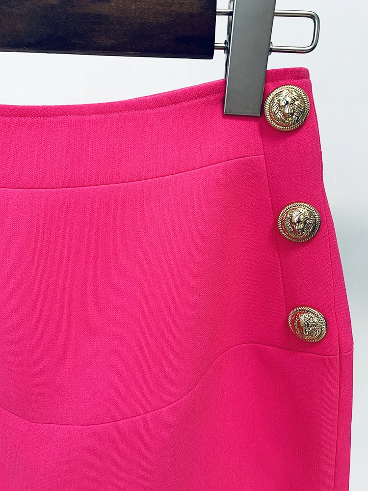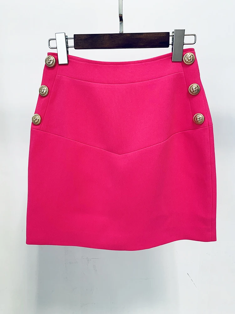 HIGH STREET New Fashion 2023 Designer Women Metal Lion Buttons Mini Skirt Hot Pink