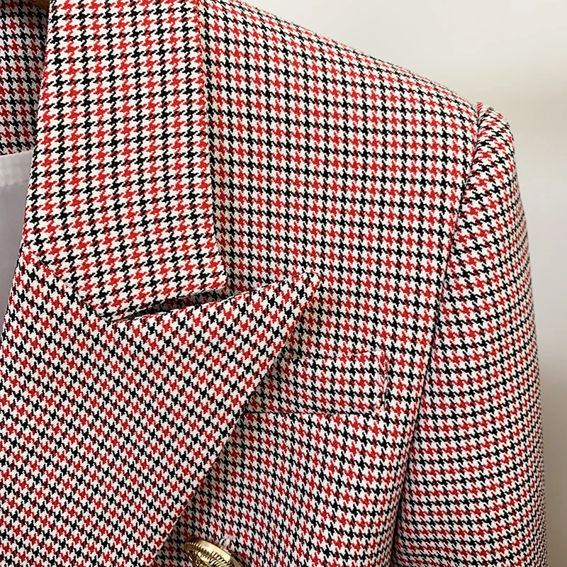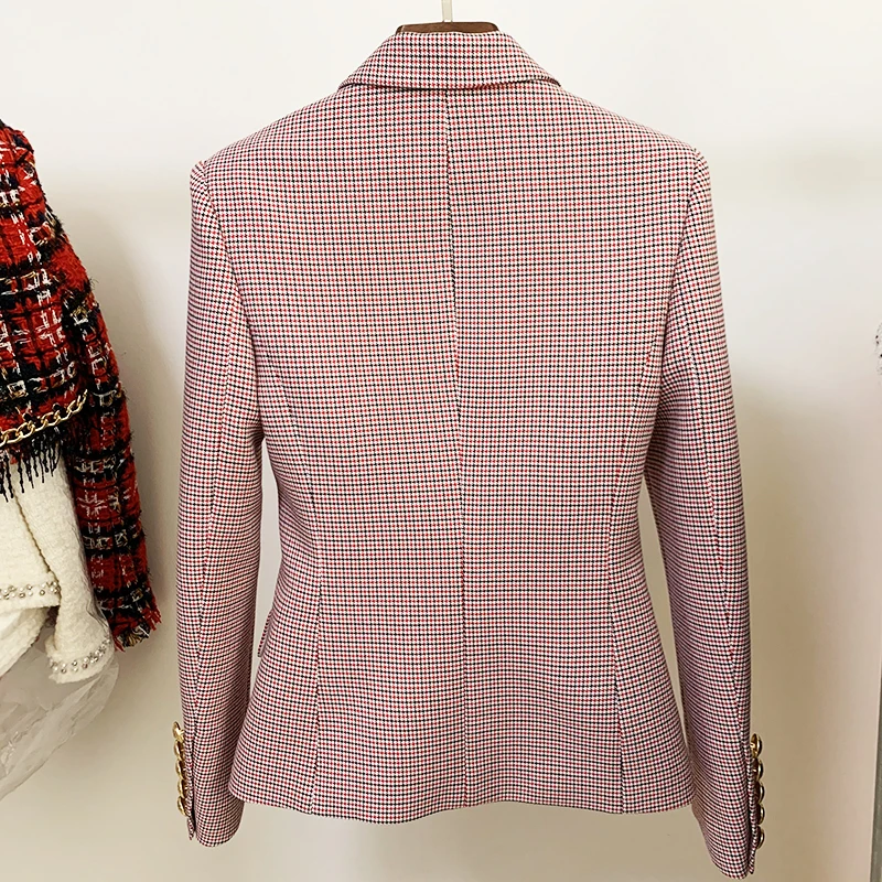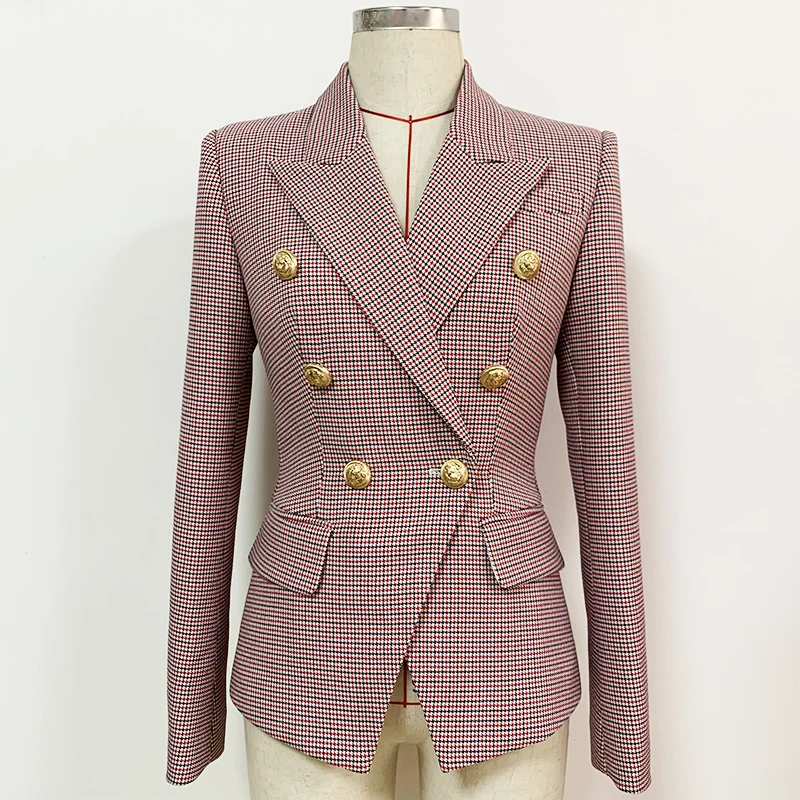 HIGH STREET Newest 2023 Designer Jacket Women's Classic Metal Buttons Double Breasted Slim Fitting Houndstooth Blazer