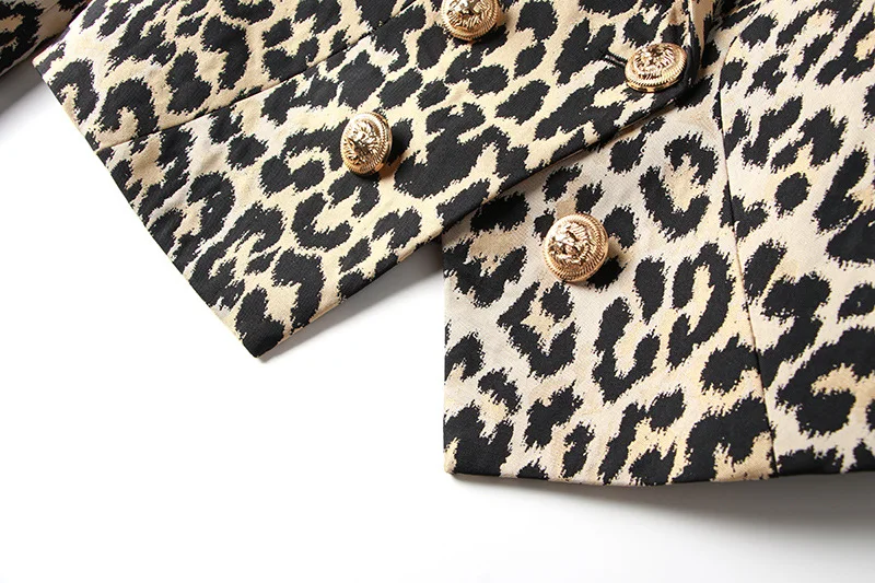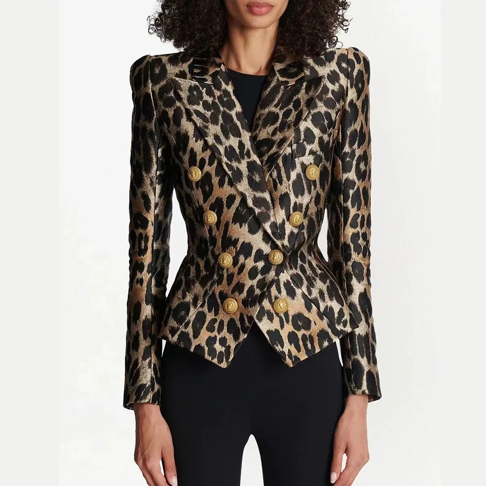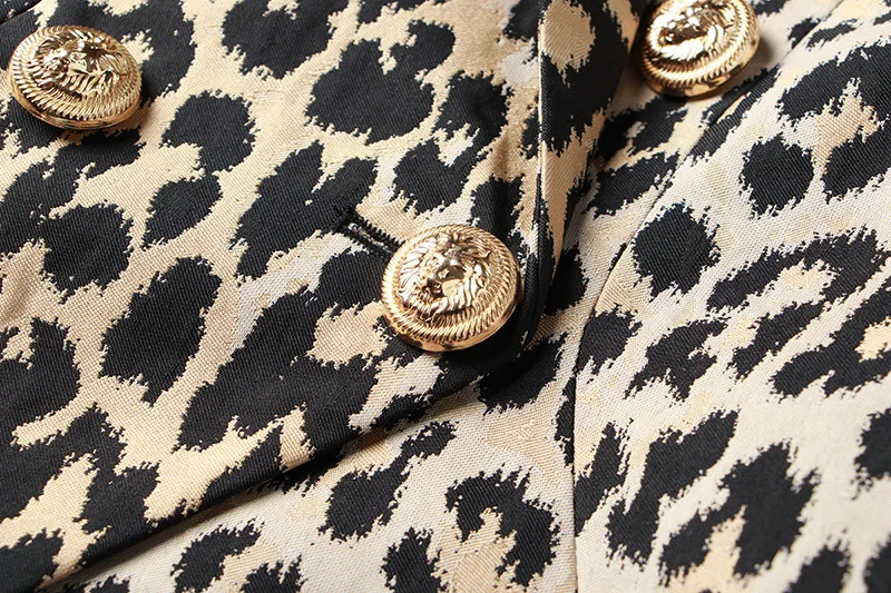 HIGH STREET Newest 2023 Designer Jacket Women's Slim Fit Lion Buttons Double Breasted Jackquard Leopard Blazer