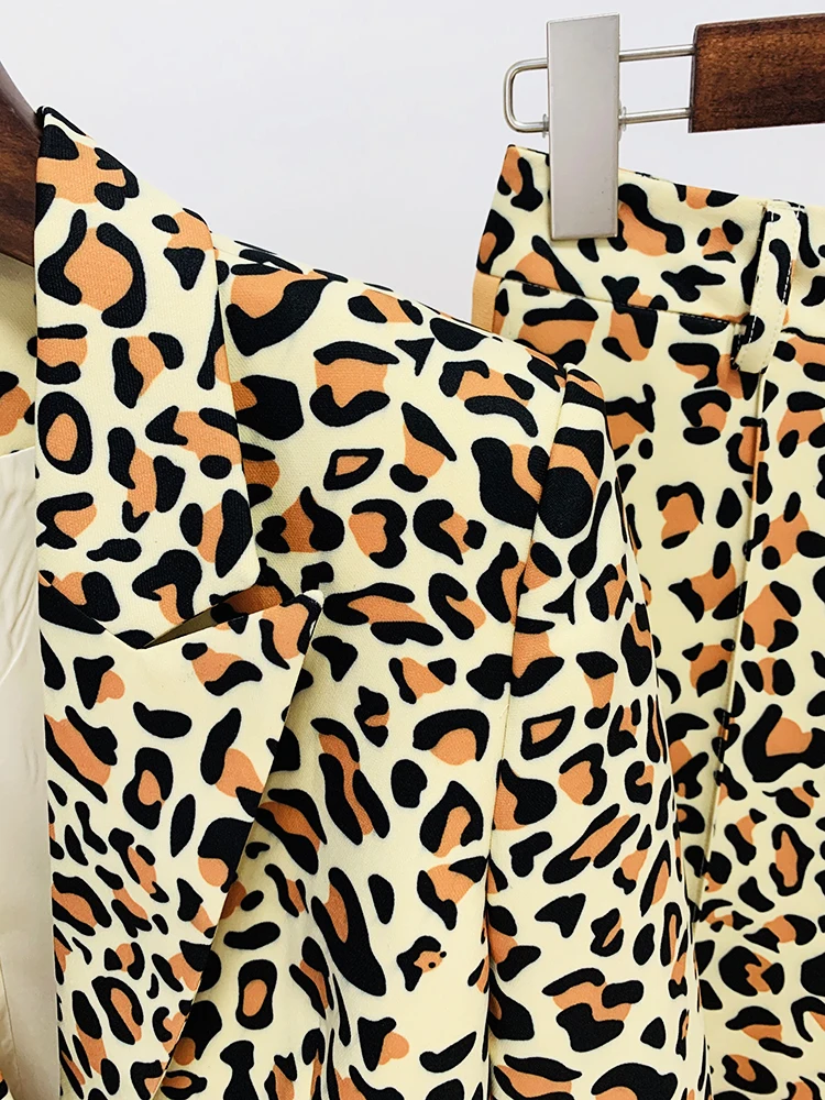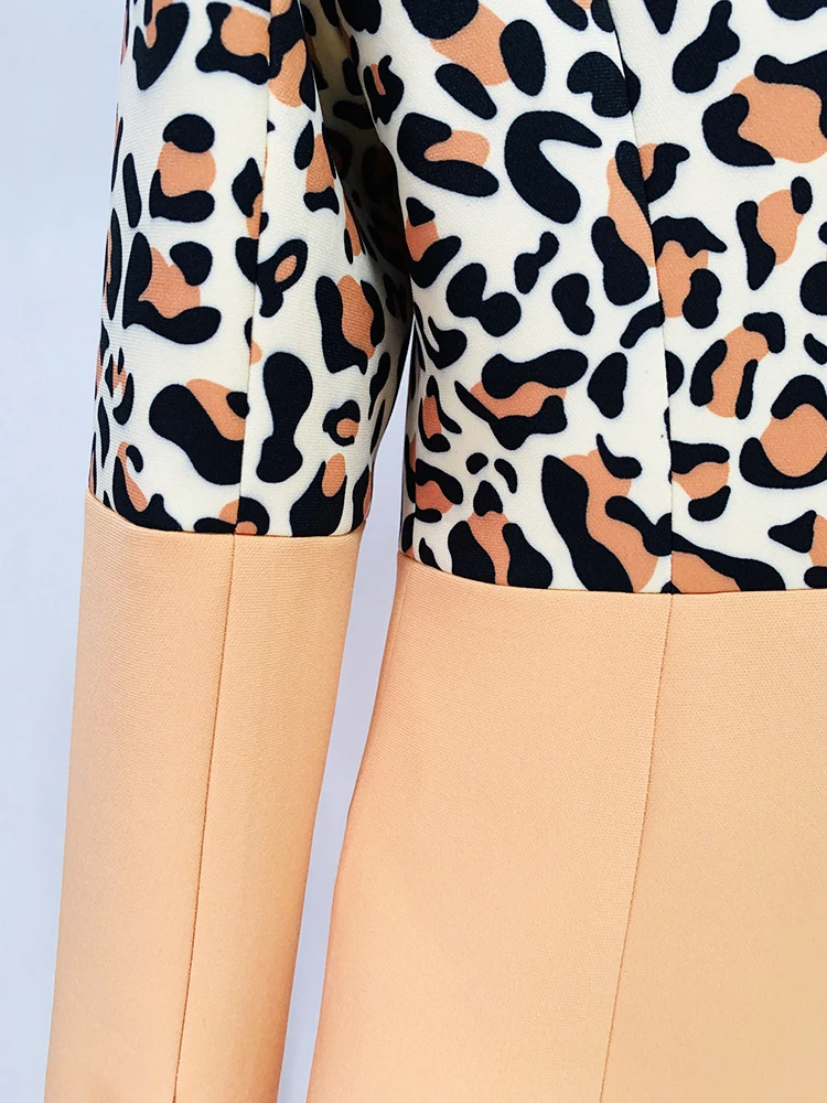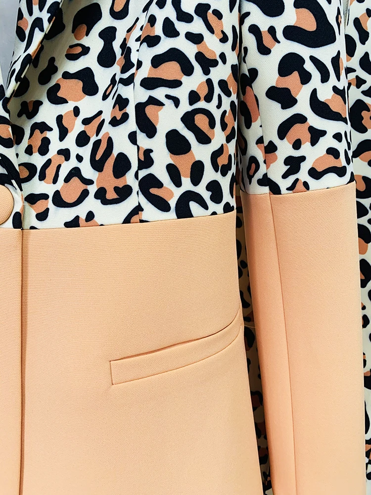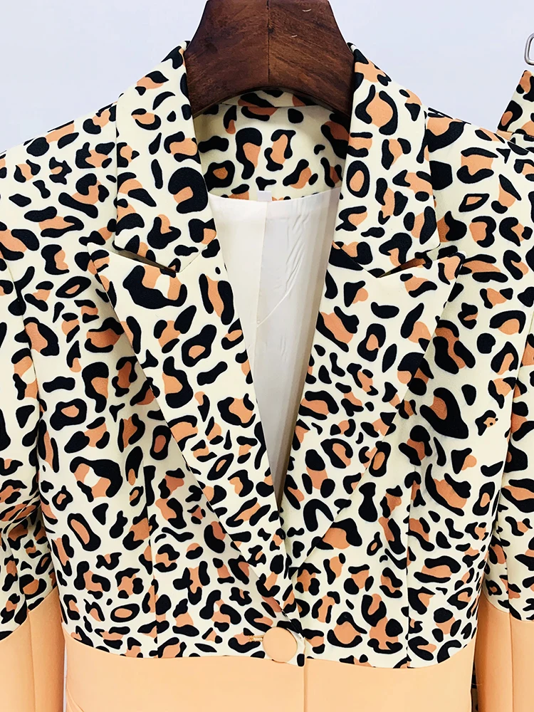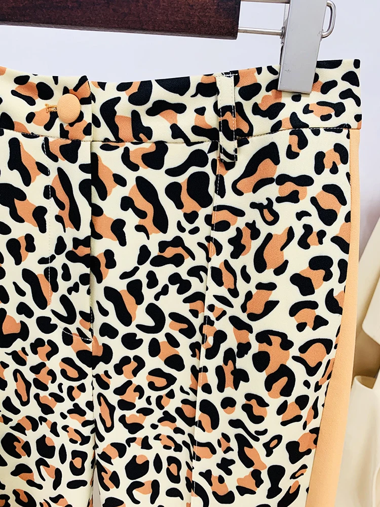 HIGH STREET Newest 2023 Designer Runway Suit Set Women's Single Button Leopard Printed Color Block Blazer Flare Pants Suit