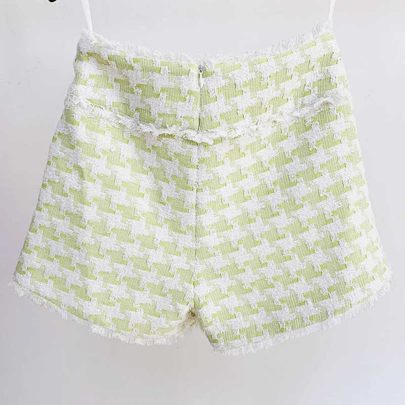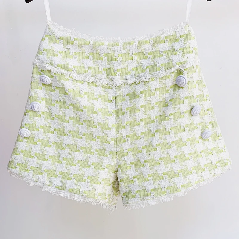 HIGH STREET Newest Fall Winter Designer Fashion Women's Lion Buttons Tassel Fringed Houndstooth Tweed Shorts