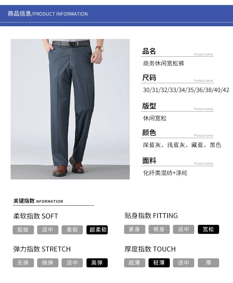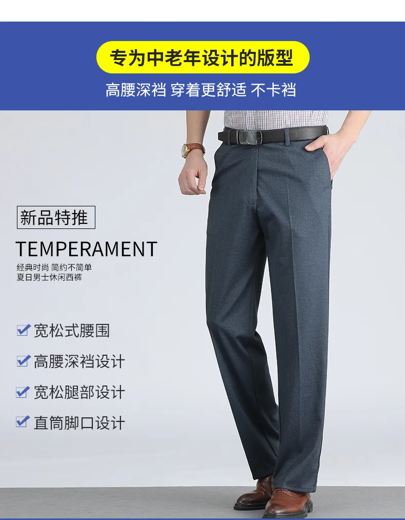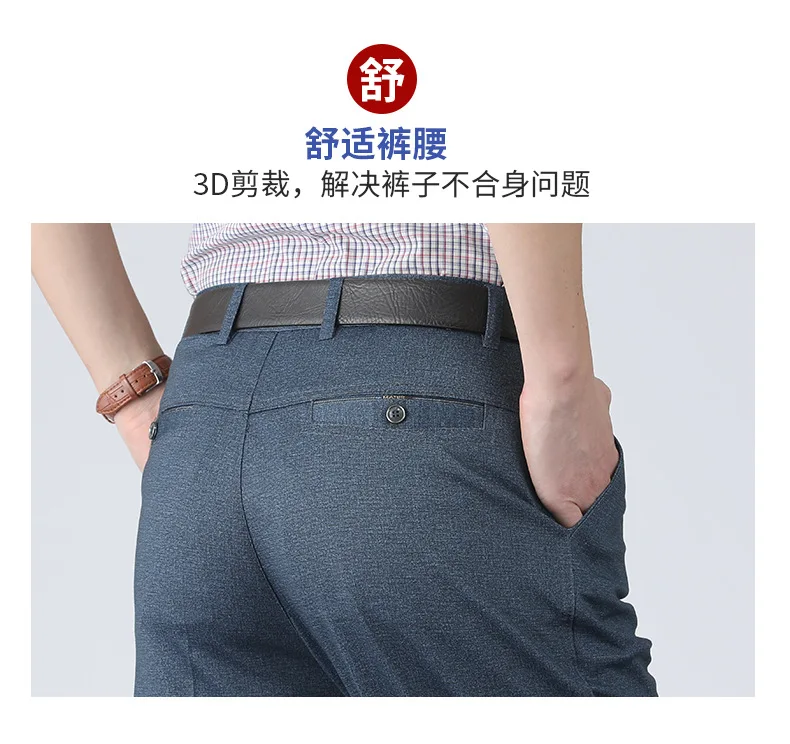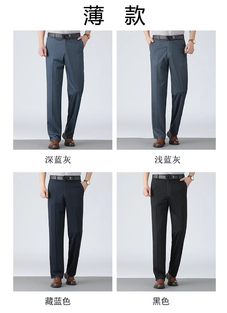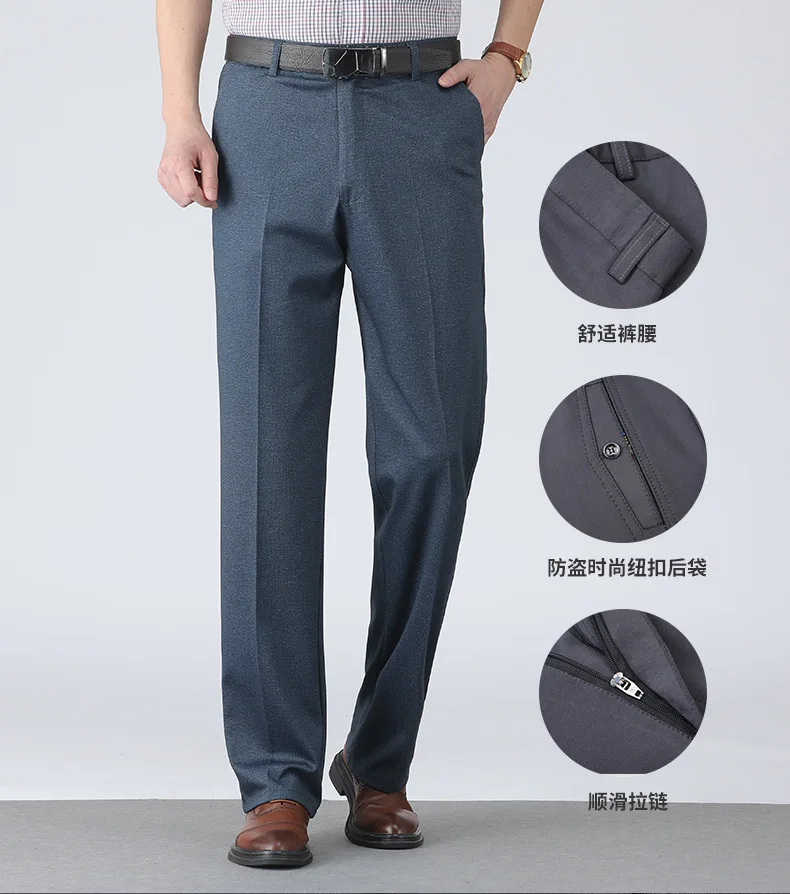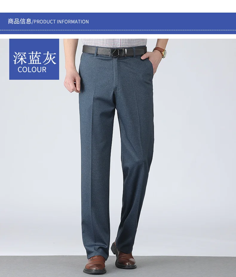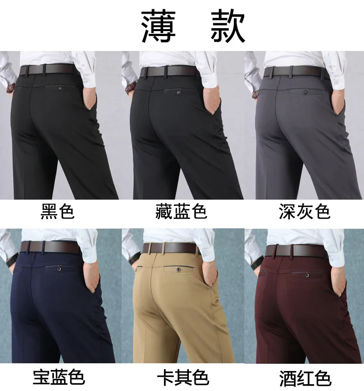 High Stretch Men's Classic Pants Spring Summer Casual Pants High Waist Trousers Business Casual Pants