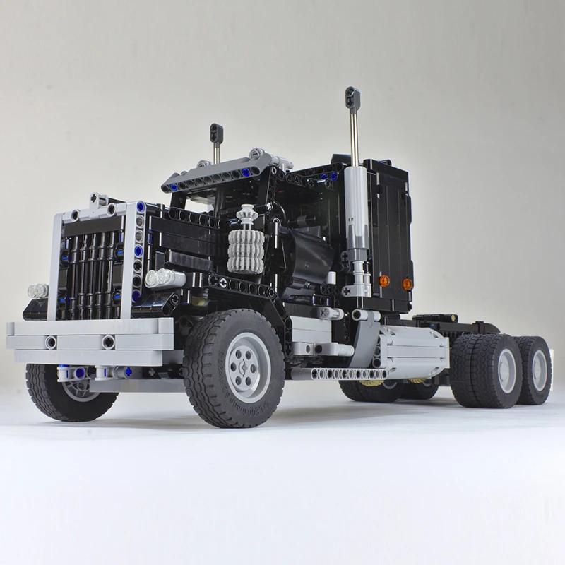 High-Tech RC Semi Truck Hauler MOC Building Blocks Black Model Big Red Truck Transport Vehicle Children Gift DIY Toys With Motor