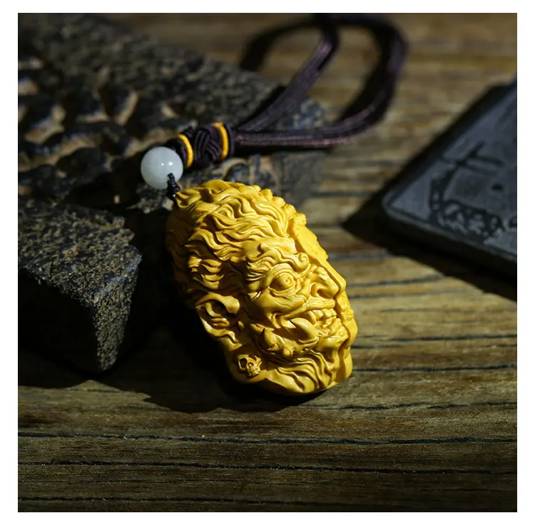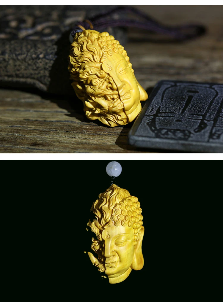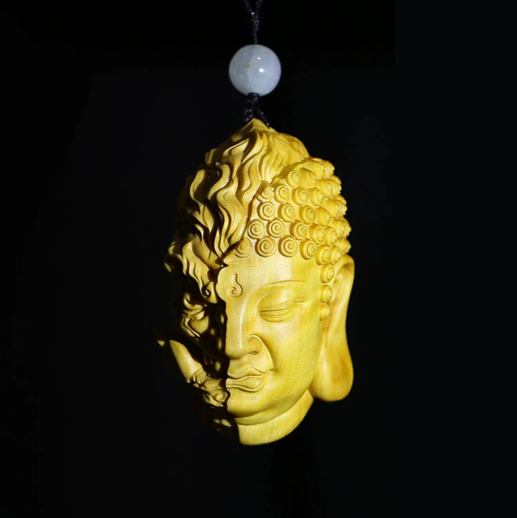 Home Decor Devil Satan Buddha Deity Head Carved Solid Wood Man Gift Wonderful Carved Statue Yellow Origin Wooden Toy