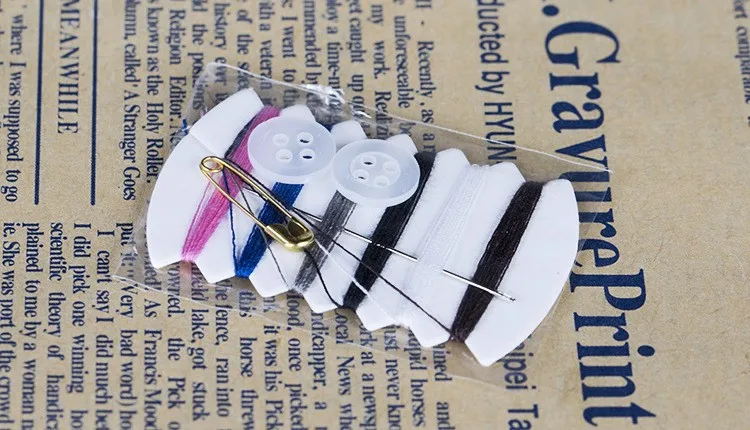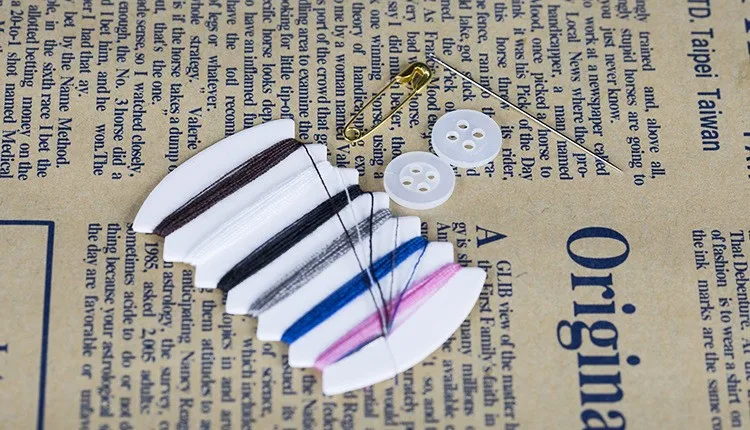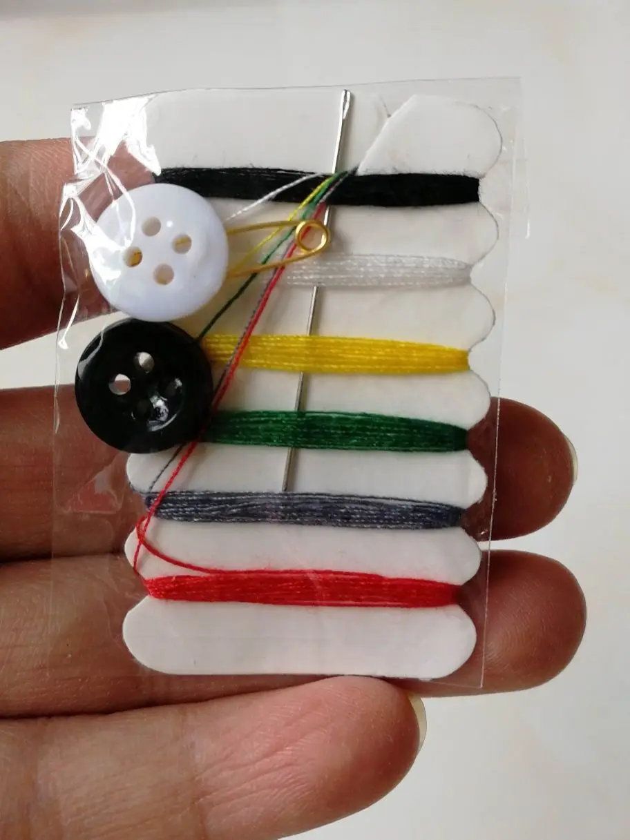 1sets Sewing kit= 1pcs needle+2pcs buttons+1pcs pin+6 colors thread