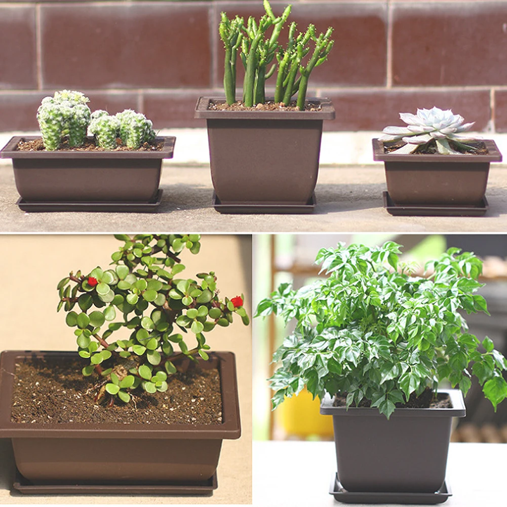 Hot Multi-size Flower Pot Balcony Square Bonsai Pots Creative Square/Rectangle Imitation Sand Plant Tray Cube Garden Flowerpots