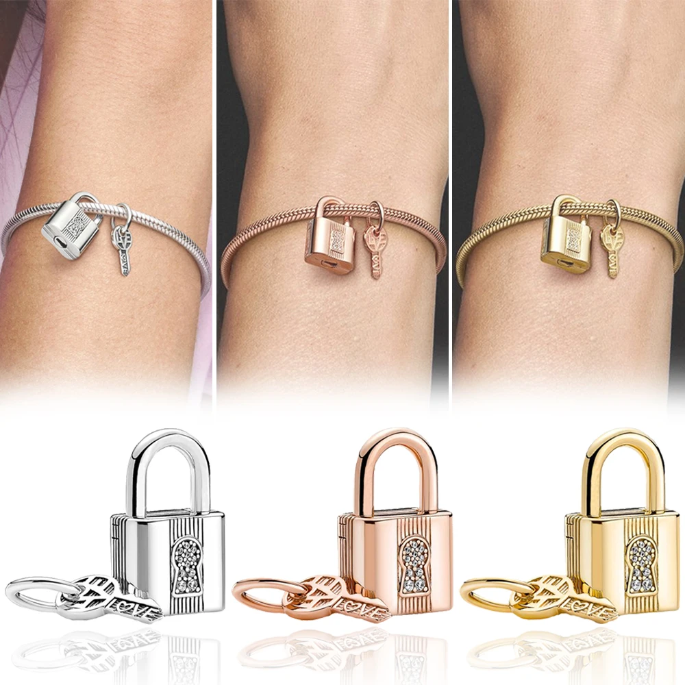 HOT New 925 Sterling Silver Padlock & Key Dangle Charms Fit Original 925 Bracelet Beads for Women Fine Diy Jewelry Gift