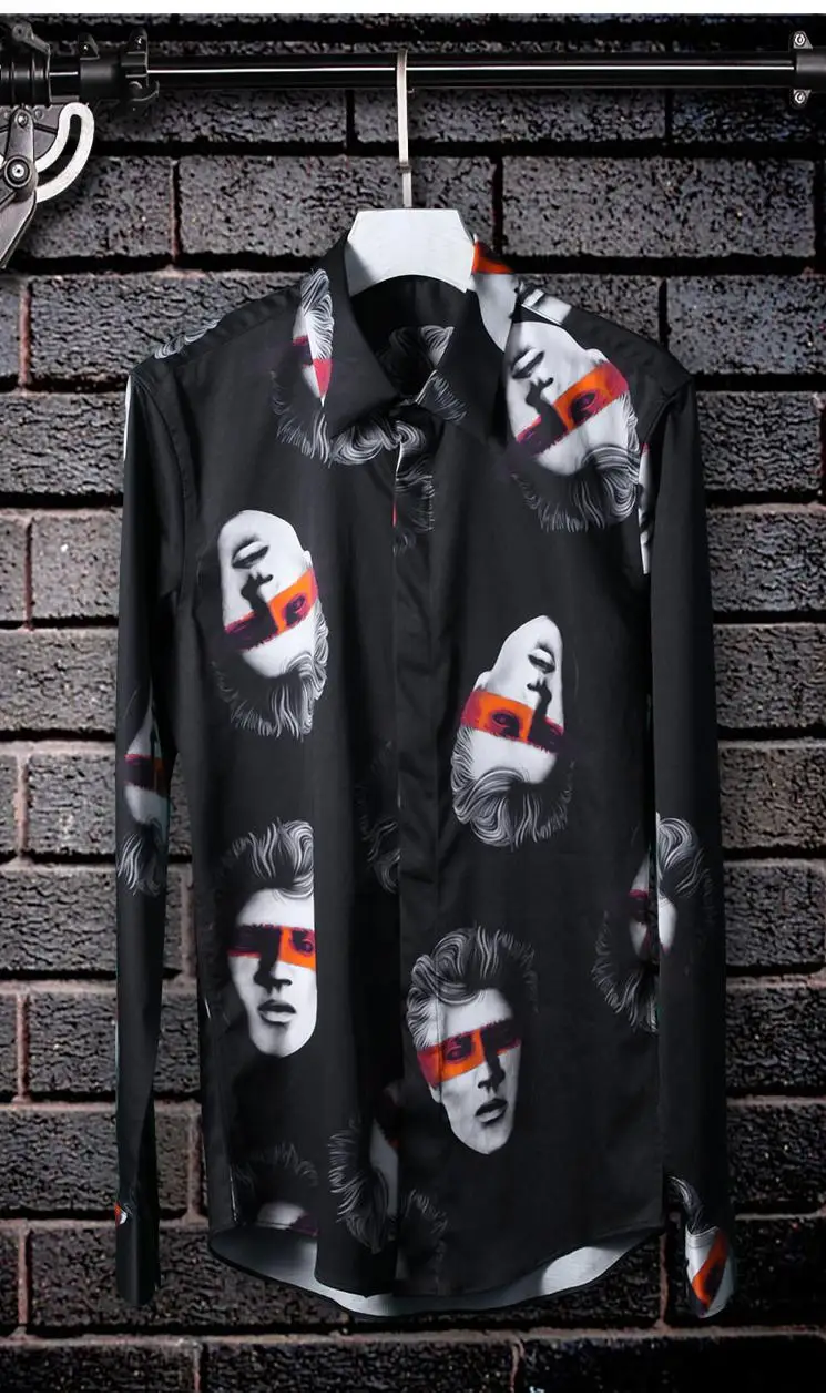 Hot!! New Arrival Fashion Handsome Men Head Digital Printing Casual Shirts Long Sleeve Cotton High Quality Plus Size M- 4xl
