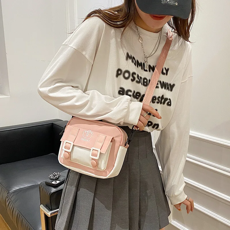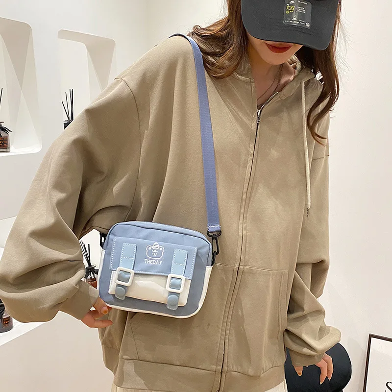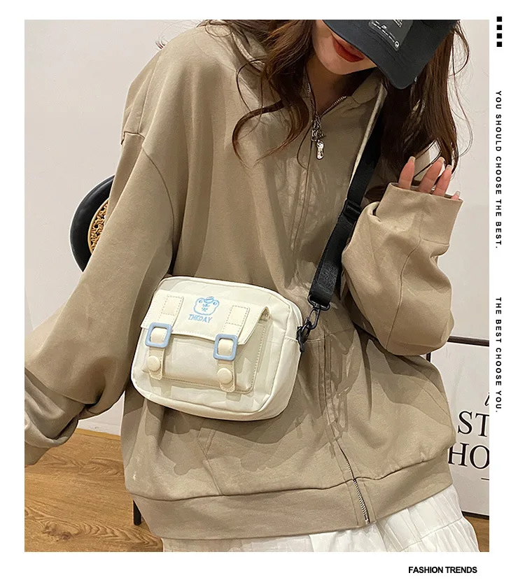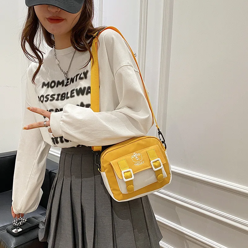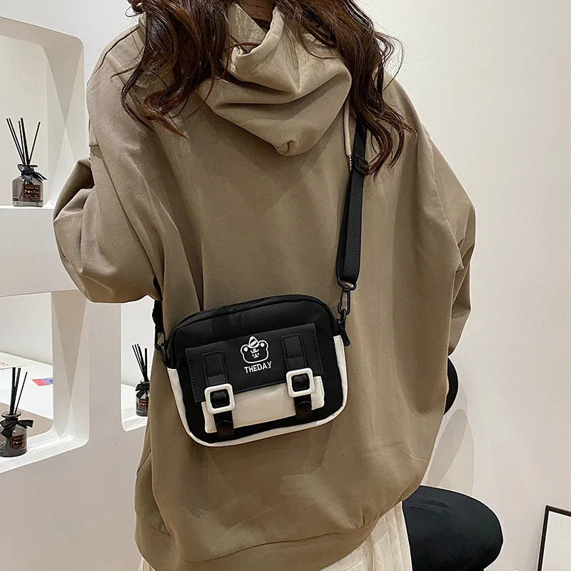 Hot Patchwork Messenger Bag For Women Casual Nylon Crossbody Bags Fashion Retro Handbags Single Shoulder Bag Mini Shopping Bags