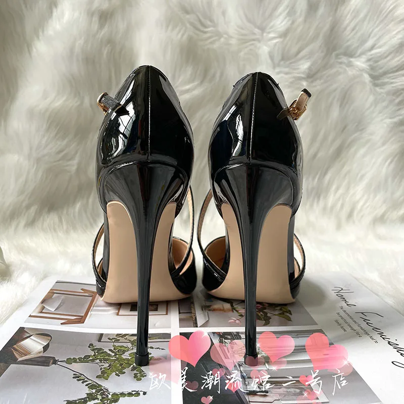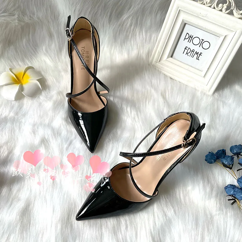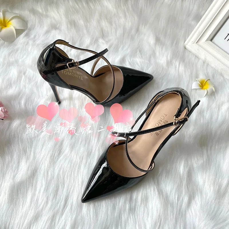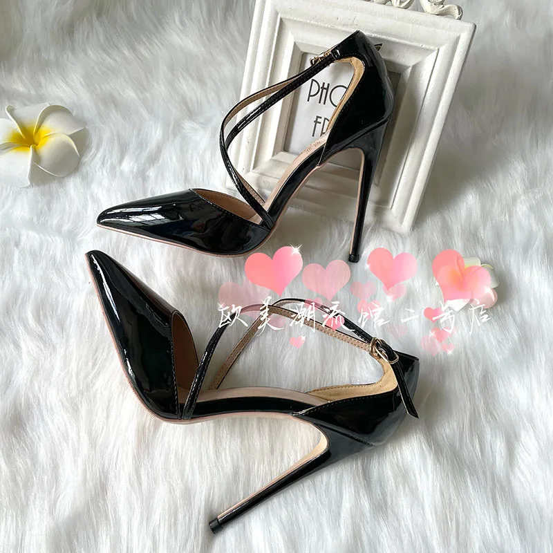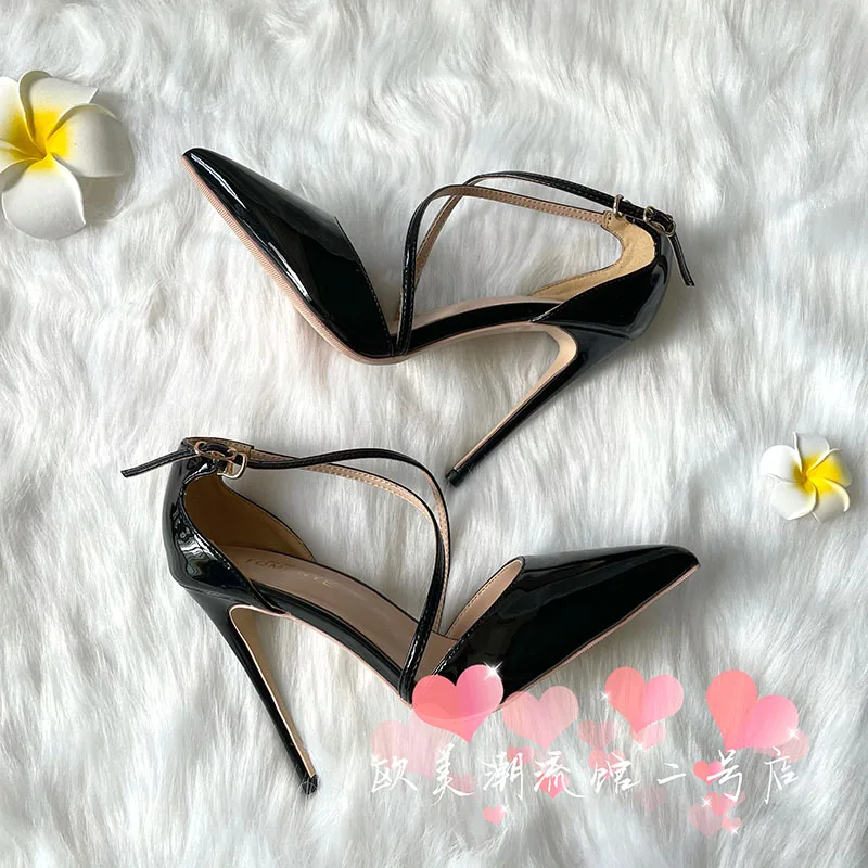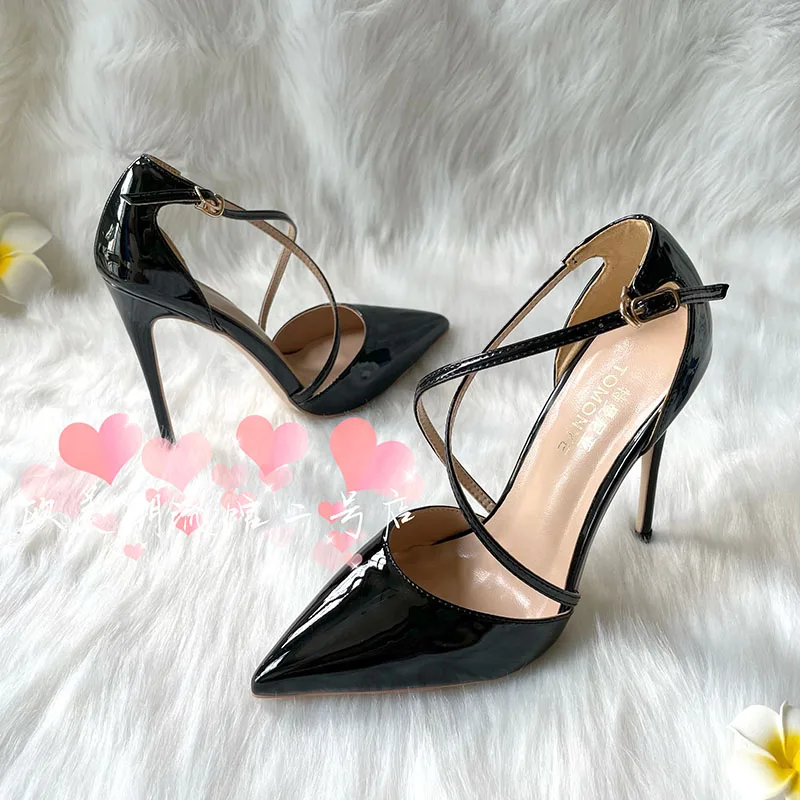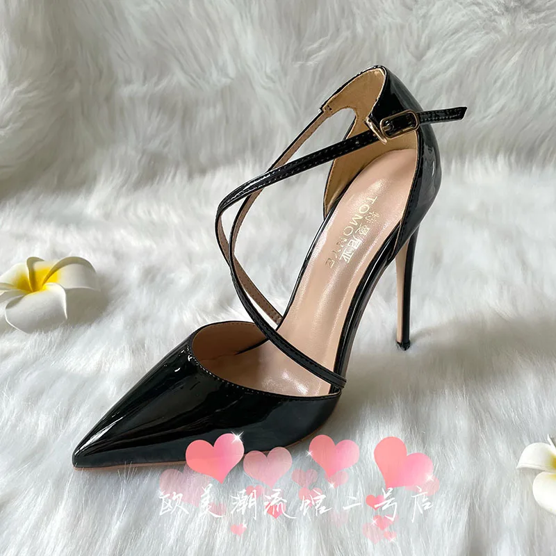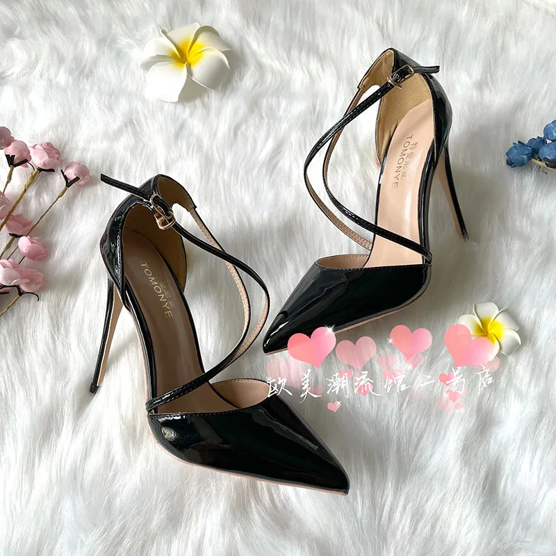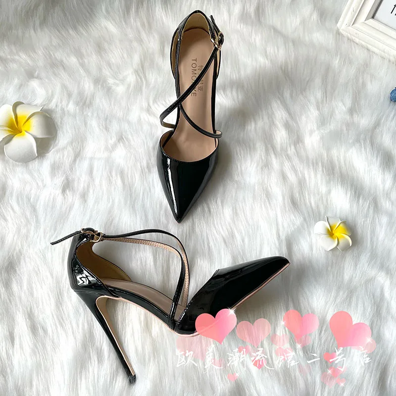 Hot sale brand designer TOMONYE black patent cross open in middle women lady girl 12cm 100mm 8cm thin heel pump shoes on sale