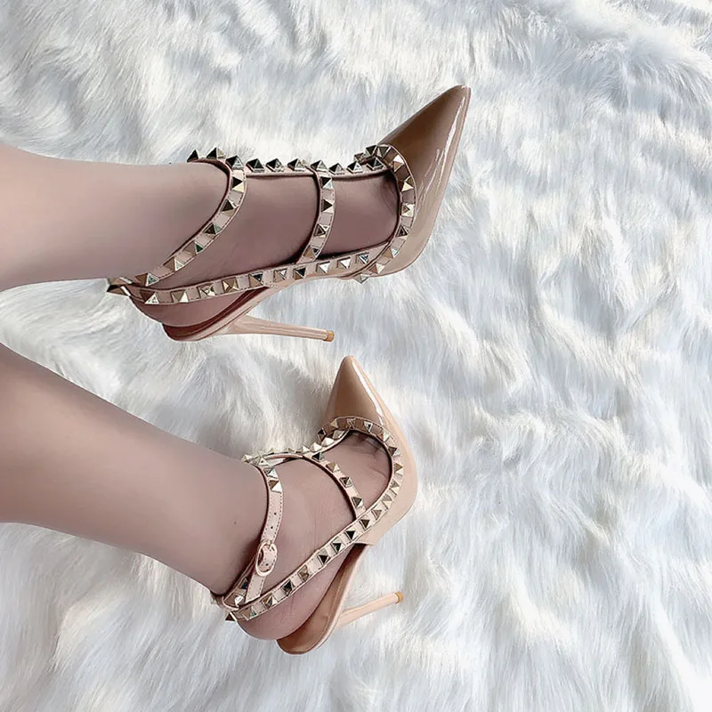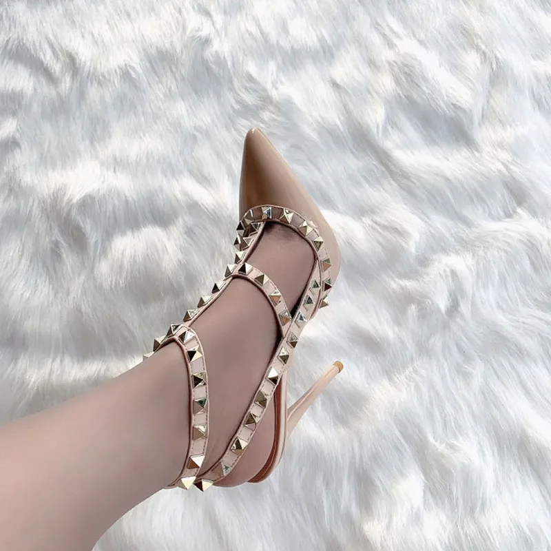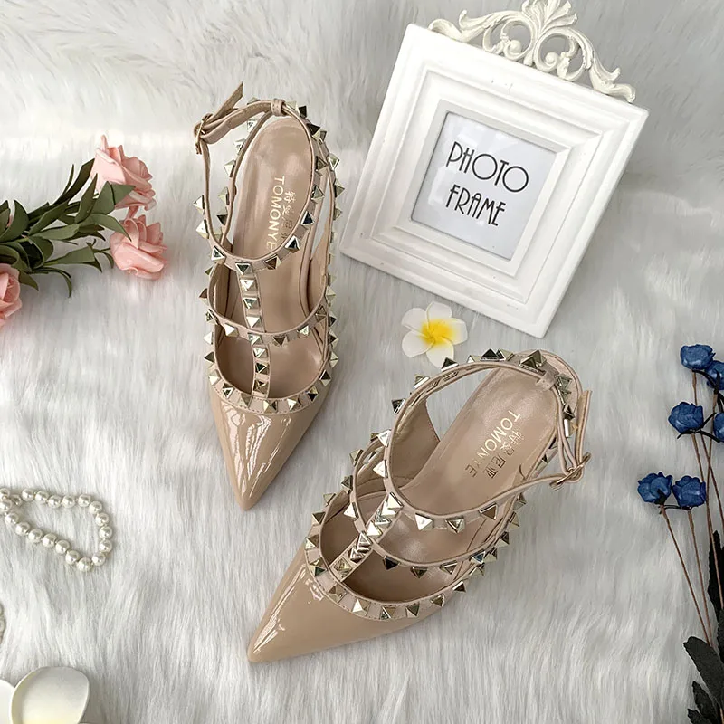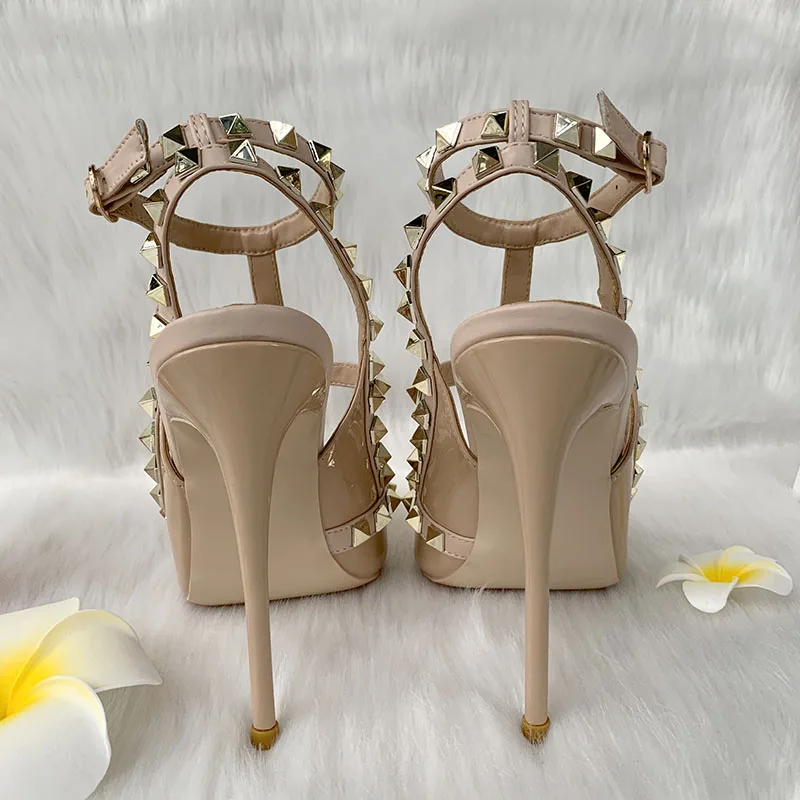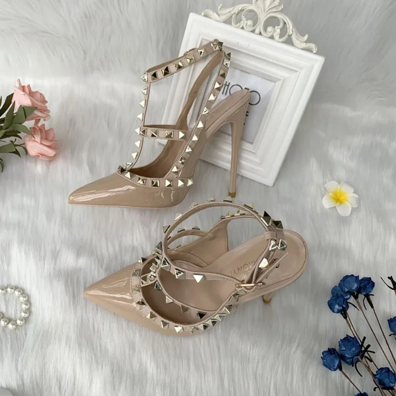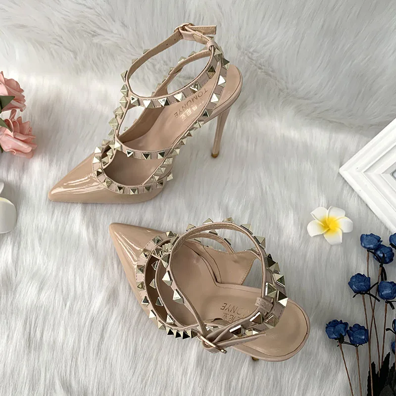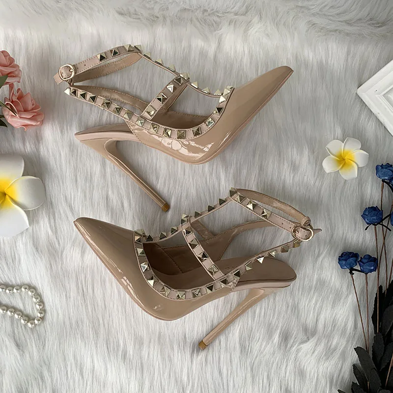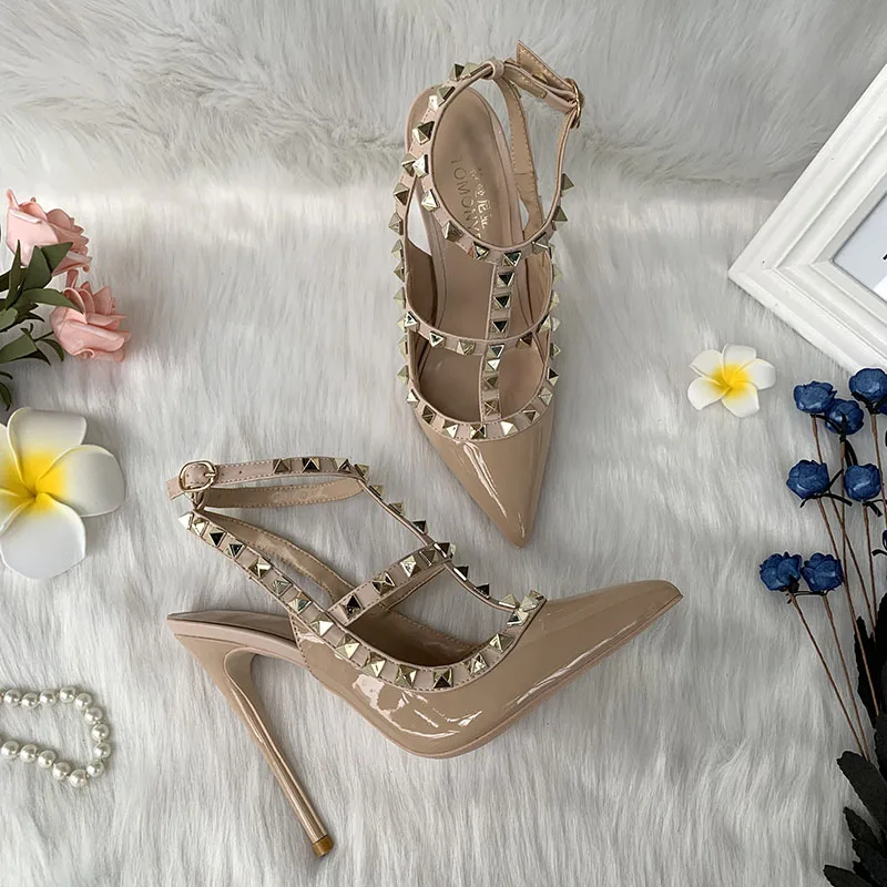 Hot sale brand designer TOMONYE dark nude patent two stud straps 12cm women lady girl high heel slingback party dress sheos