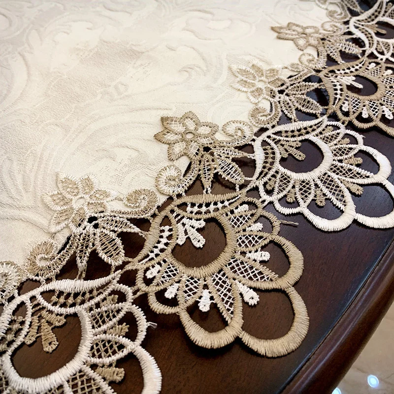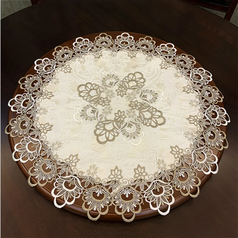 Hot Selling Modern Brocade Fabric Embroidered Lace Trim Tablecloth Coaster Set Bedroom Small Round Table Mat Party Decoration