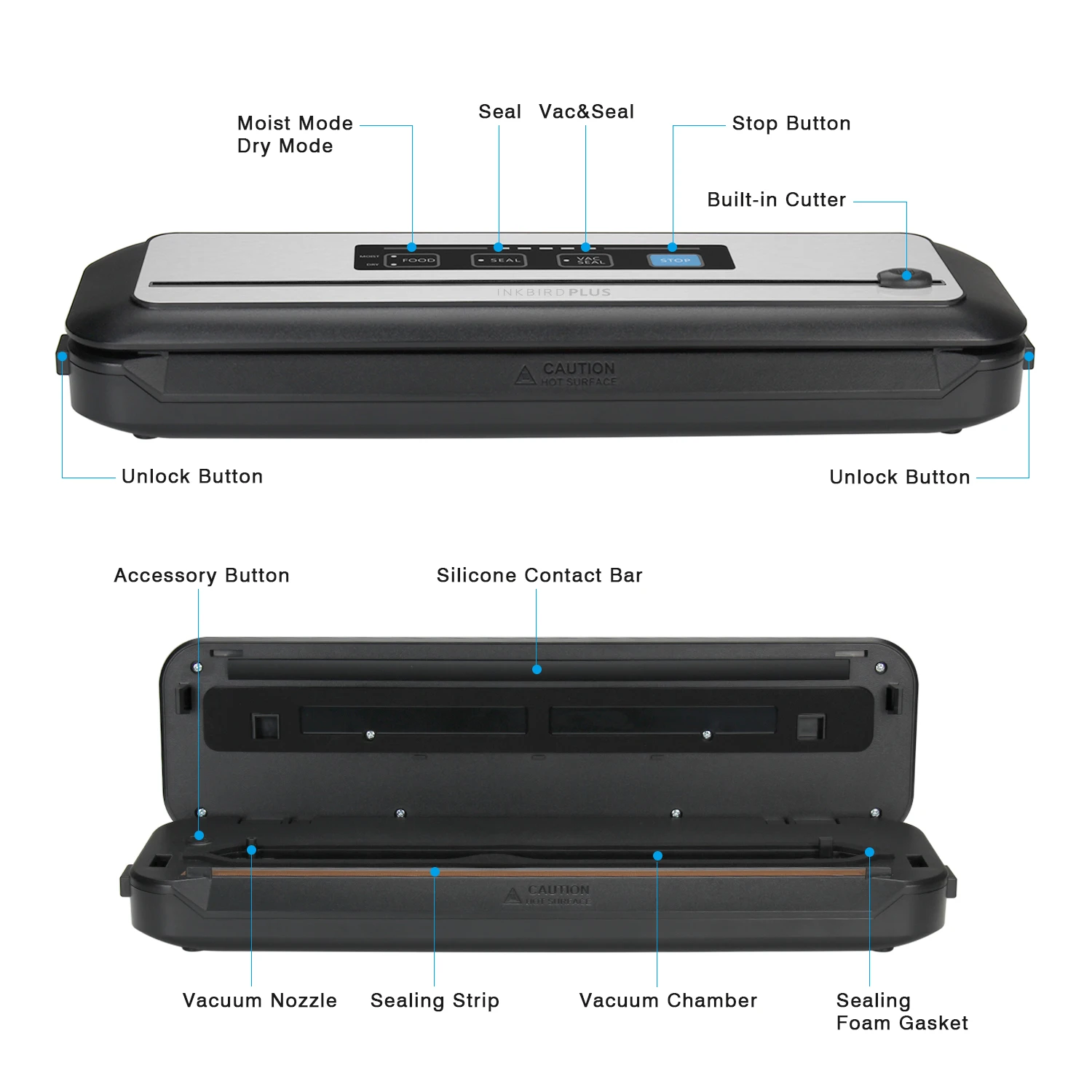 ✅5X Longer Preservation:The vacuum sealer removes air from bags and seals them to keep foods fresh and extend the shelf life of them. The vacuum preservation time is 5 times the ordinary preservation.