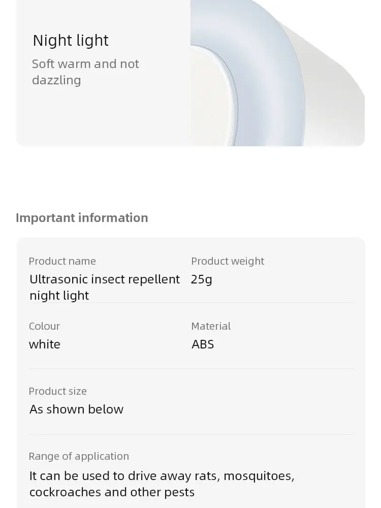 3. The product should work 24 hours a day to achieve the best effect of repelling rats and mosquitoes! The shell is made of flame retardant material (flame retardant ABS engineering plastic material), safe and reliable, please rest assured!