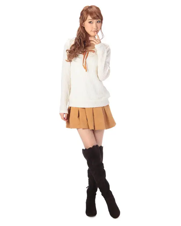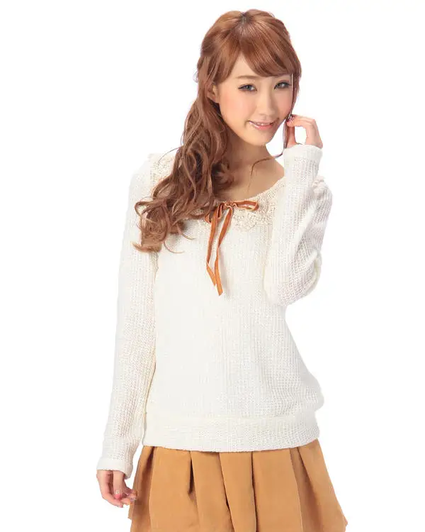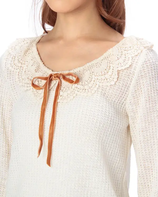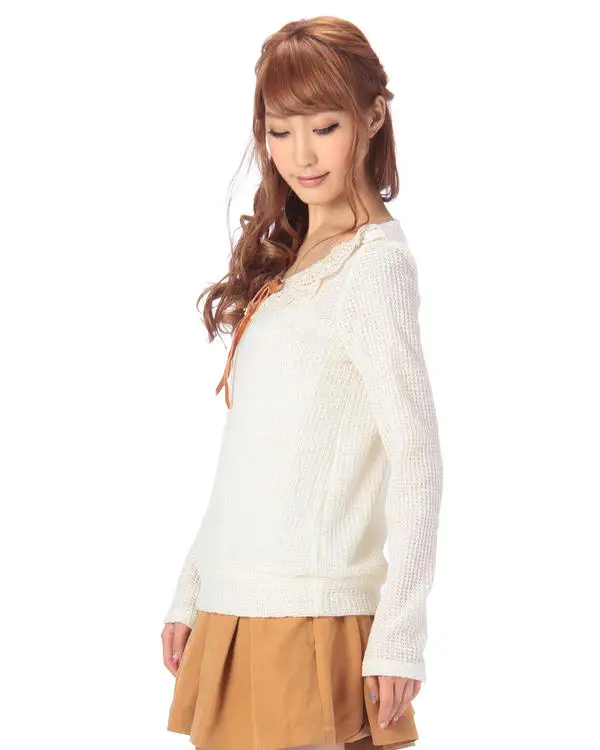 Japan College Penderie Liz Lisa Girl Lace Collar Velvet Ribbon Knitted Top Sweater
