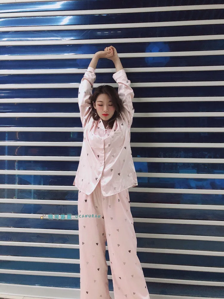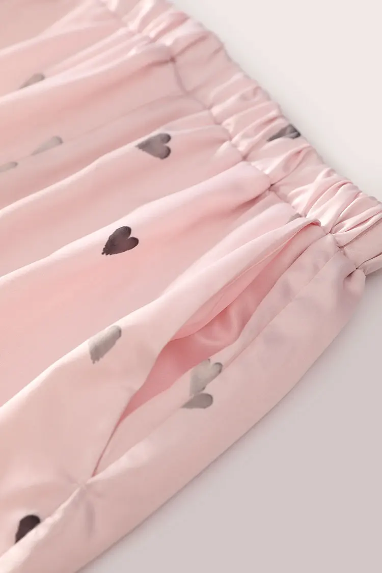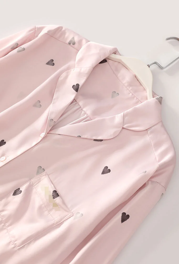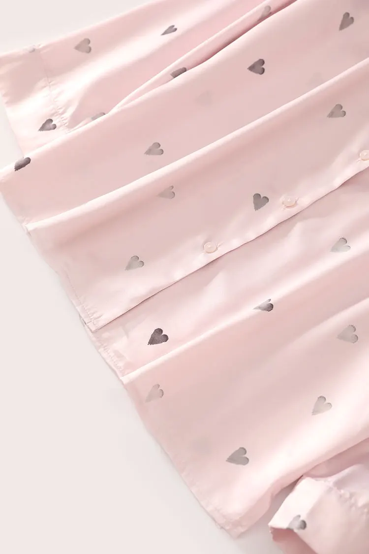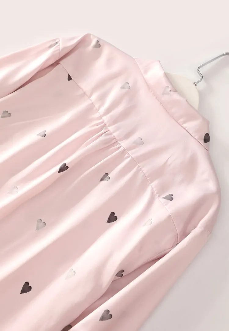 Japan GP Silk Heart Printing Knitted Lining Shirt Homewear Long Pajamas Gelato Lounge Wear