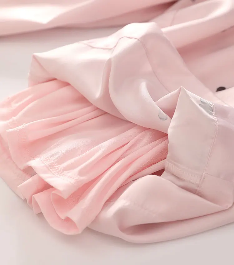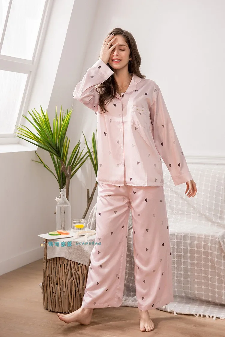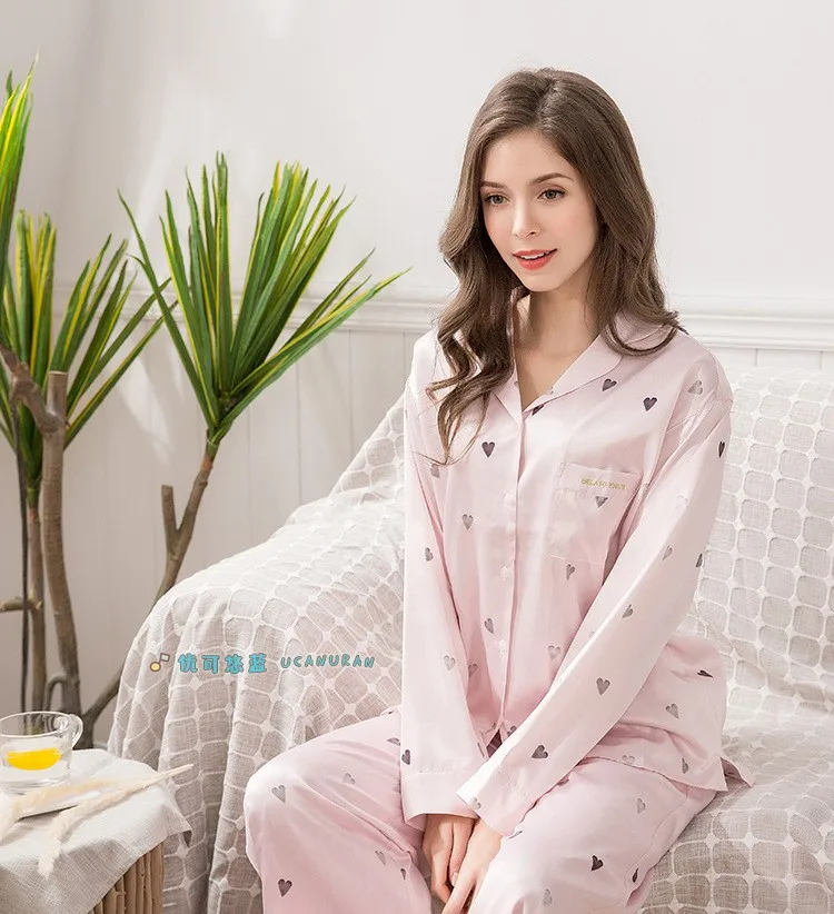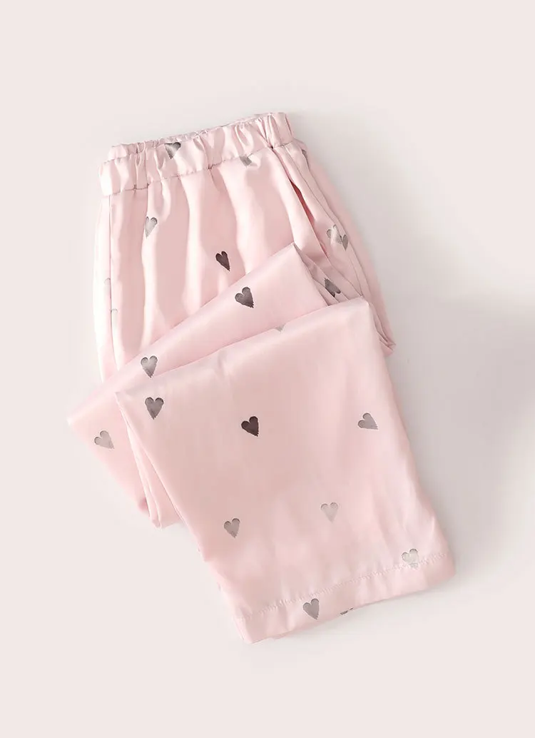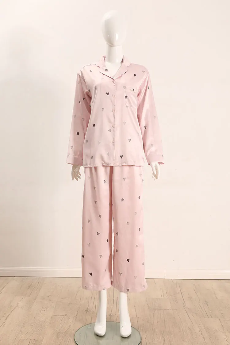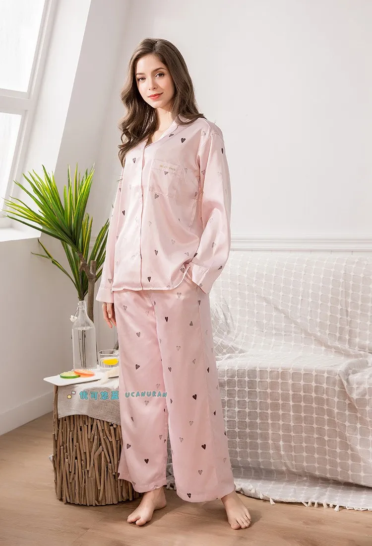 Japan GP Silk Heart Printing Knitted Lining Shirt Homewear Long Pajamas Gelato Lounge Wear