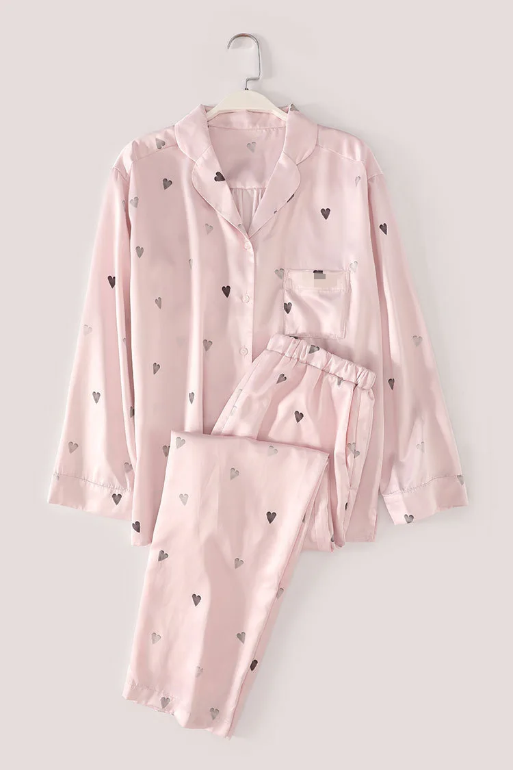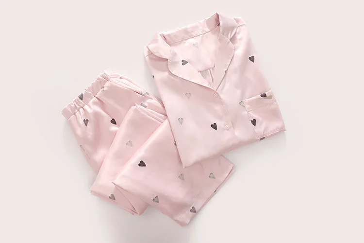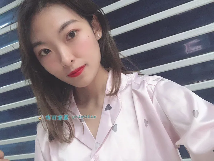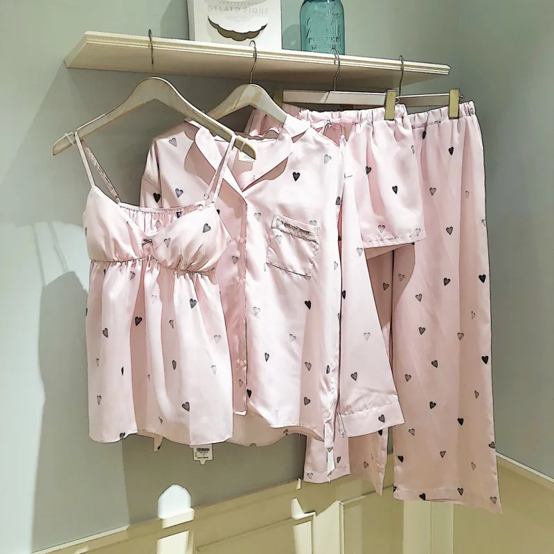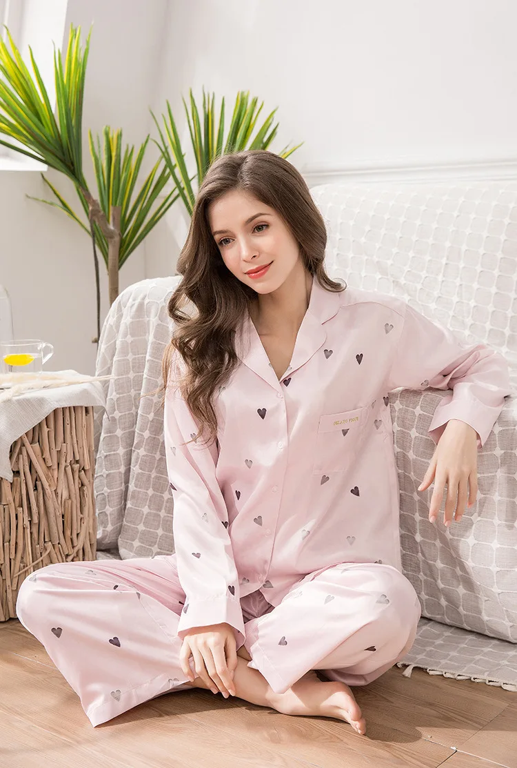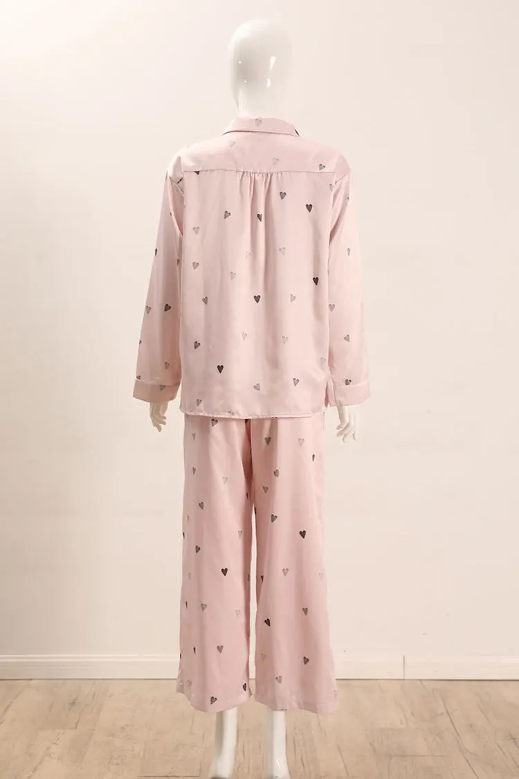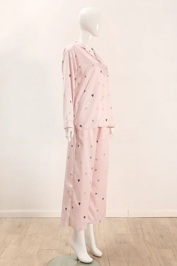 Japan GP Silk Heart Printing Knitted Lining Shirt Homewear Long Pajamas Gelato Lounge Wear
