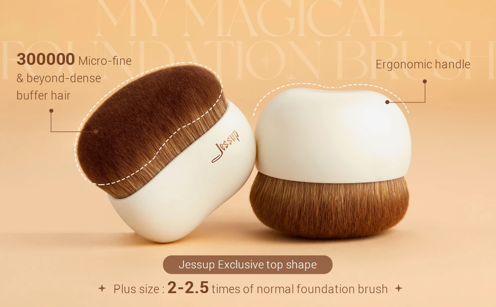 Jessup My Magical foundation brush has 300 thousand Micro-fine&beyond-dense buffer hair, with 43mm wide supper-large flat top shape bristle for even coverage, takes only seconds to achieve a professional flawless makeup finish.