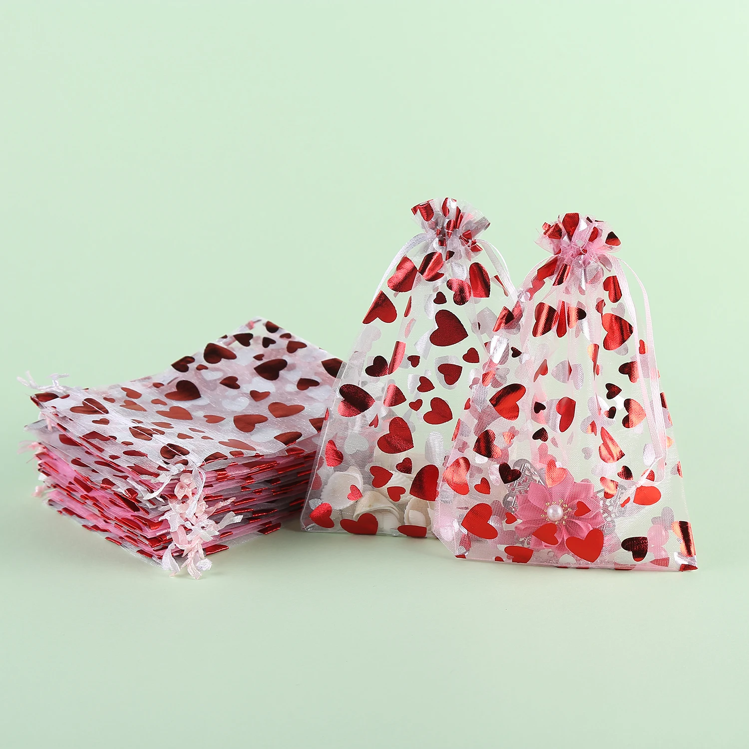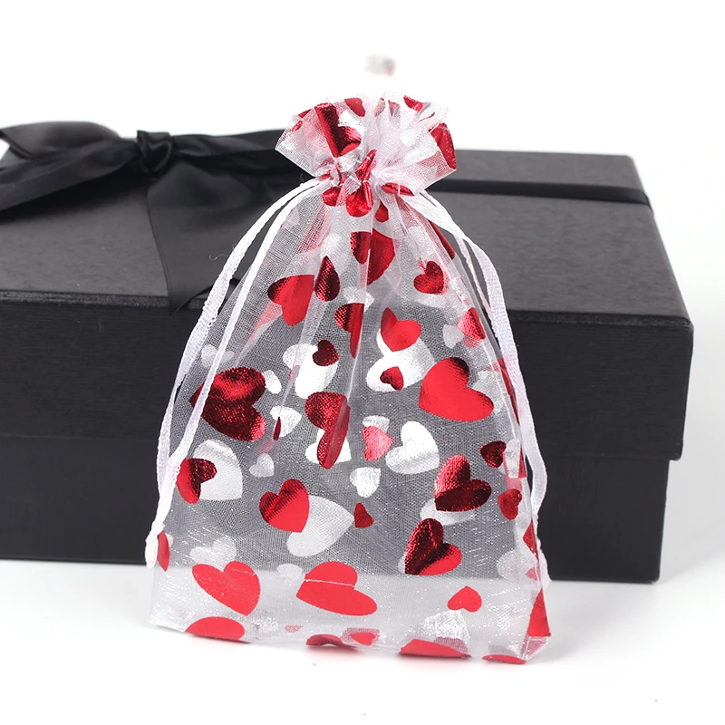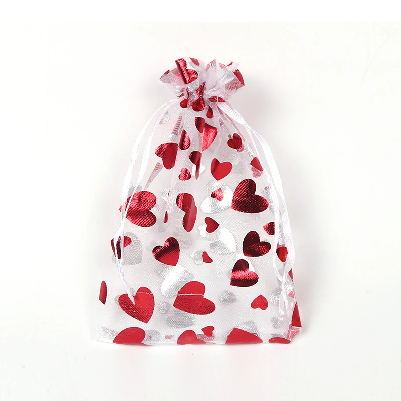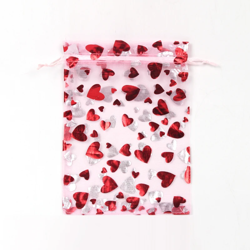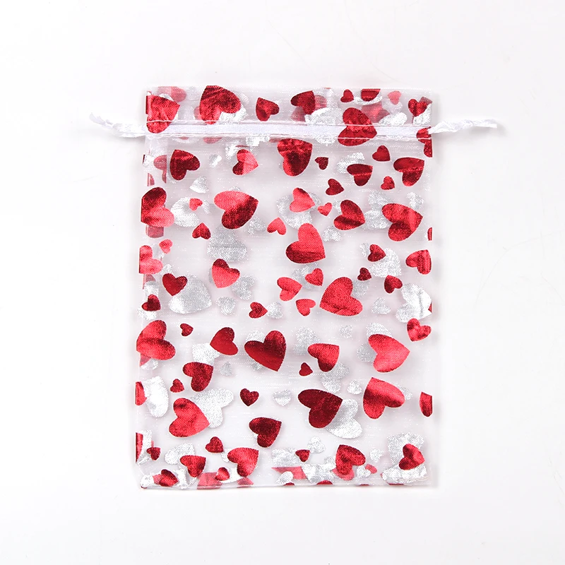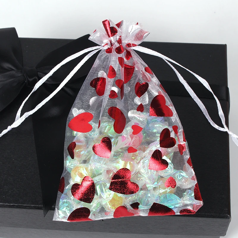 Jewellery Pouches 50Pcs/Lot Heart Organza Bags Christmas Gift Pouches Gift Display Packing Sachet Gift Bolsa Can Customized Size