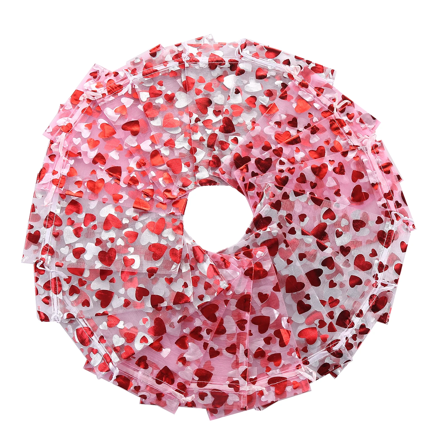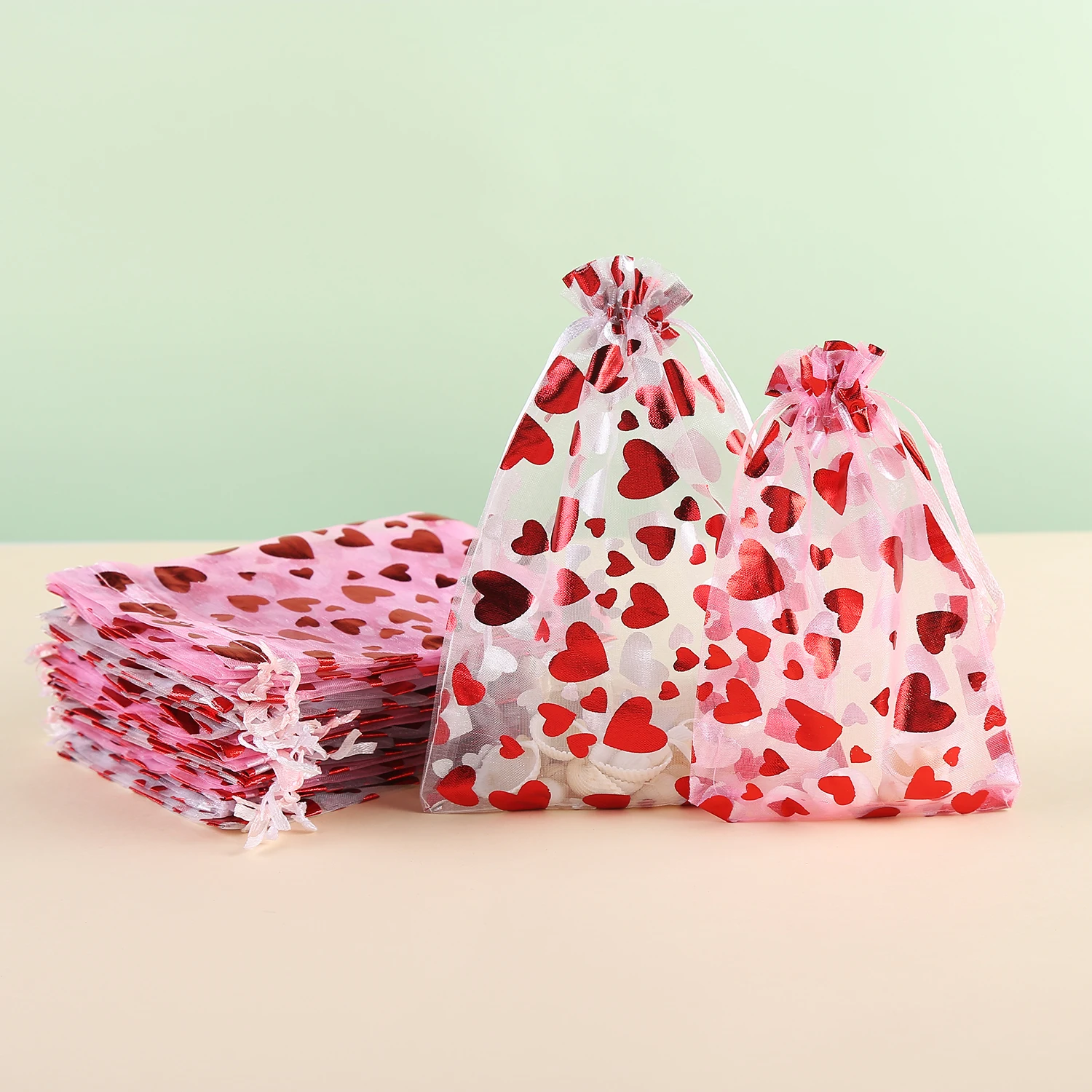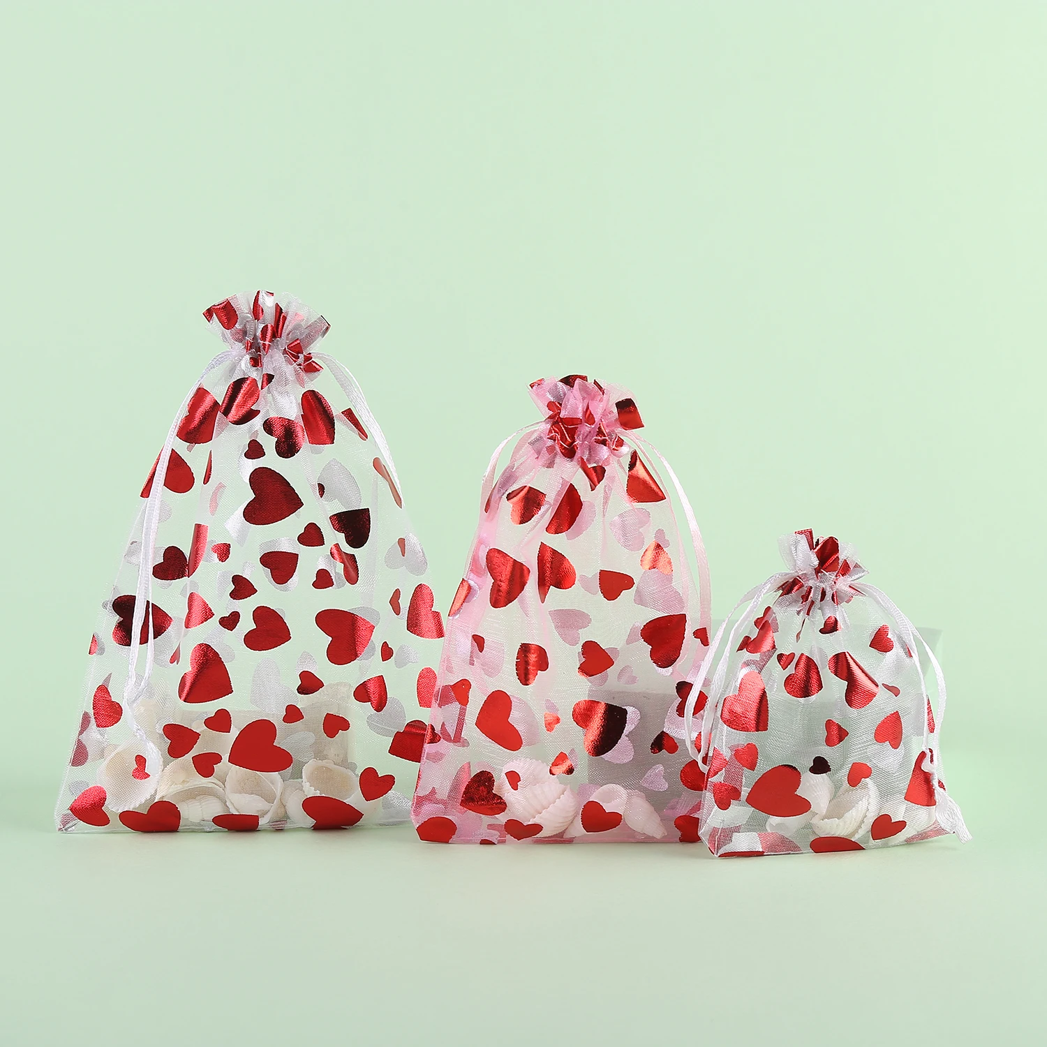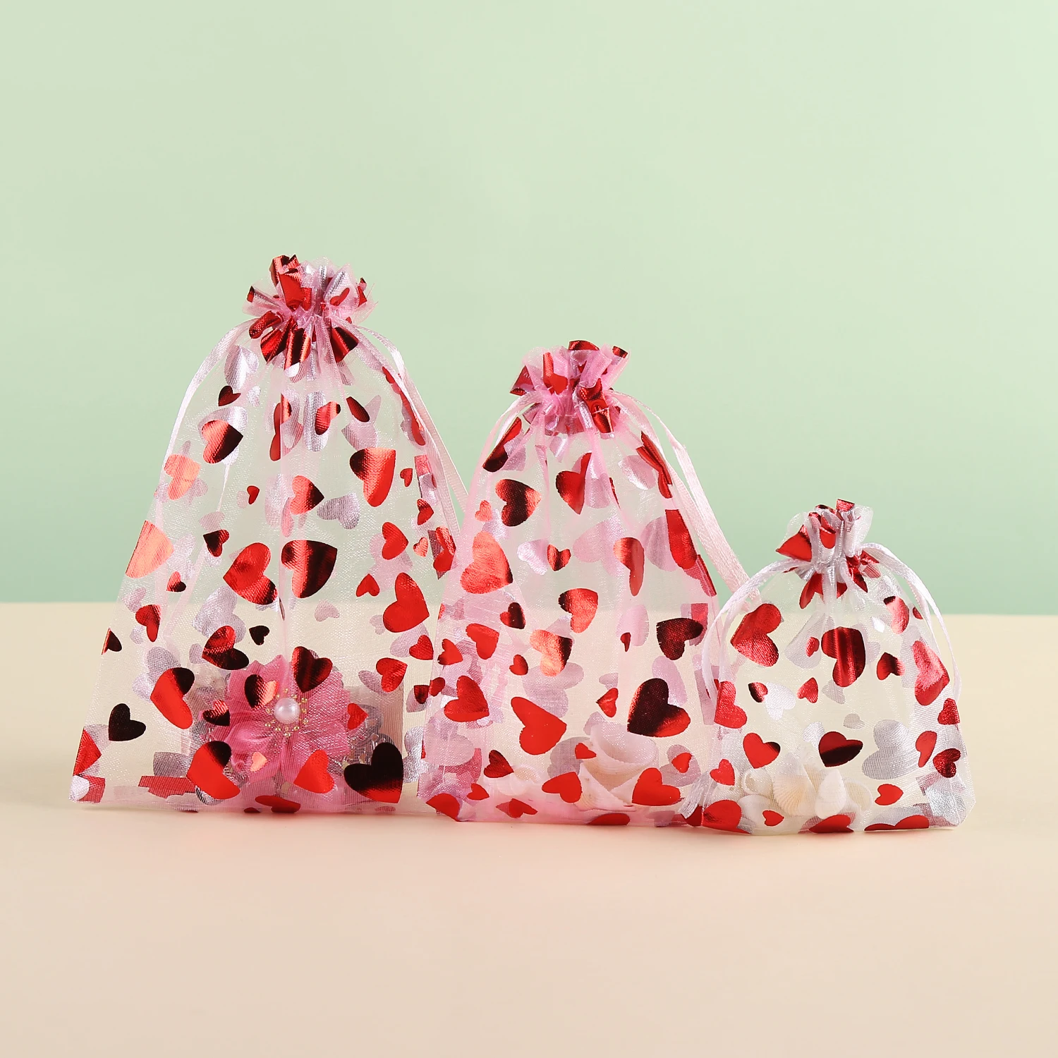 Jewellery Pouches 50Pcs/Lot Heart Organza Bags Christmas Gift Pouches Gift Display Packing Sachet Gift Bolsa Can Customized Size