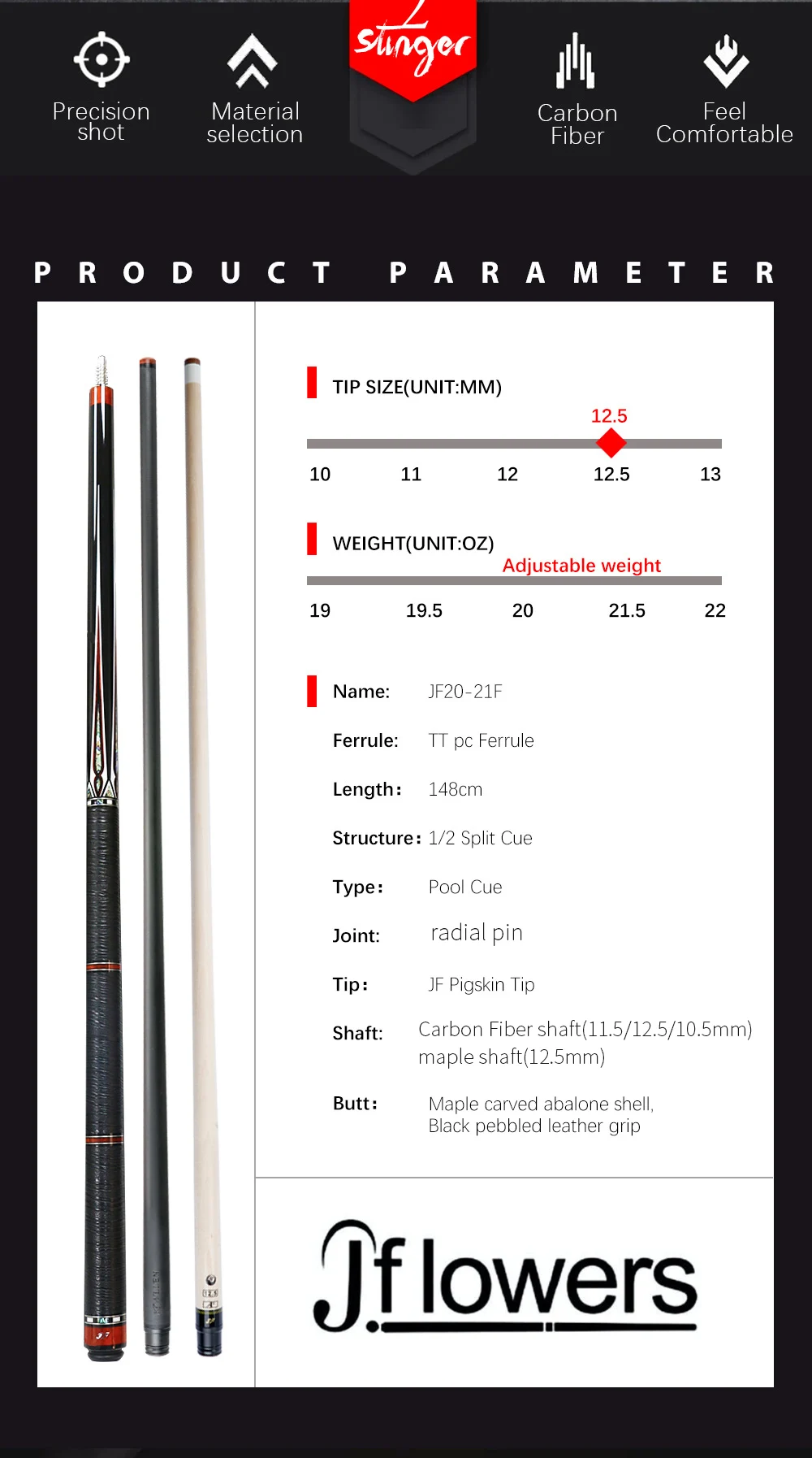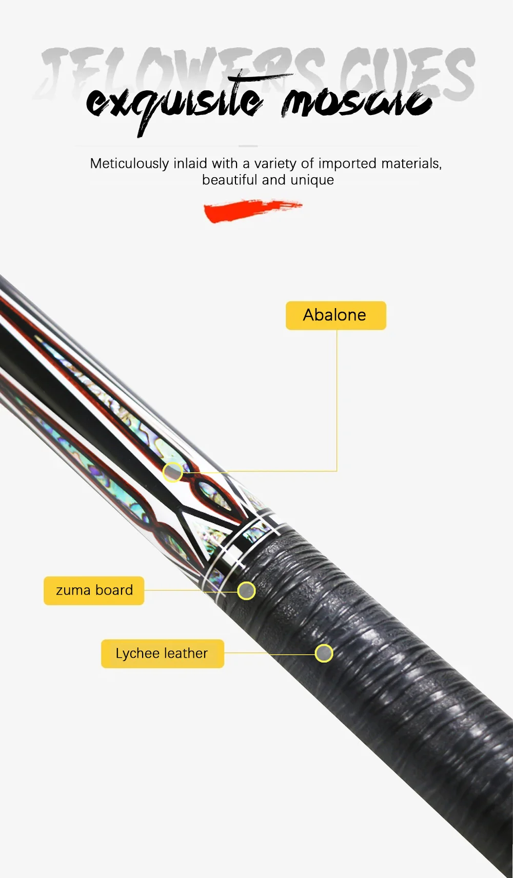 Jflowers Billiard Carbon Fiber Pool Cue Stick 12.5mm Tip Real Inlay Cue Technology Inlay Low Deflection Billiards Cue Kit