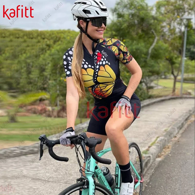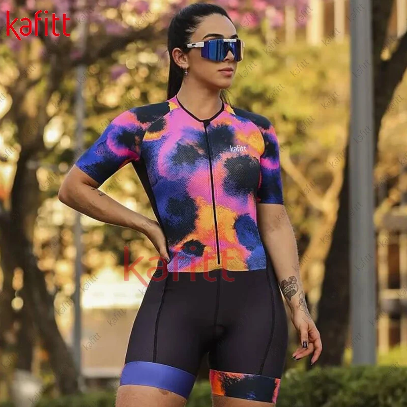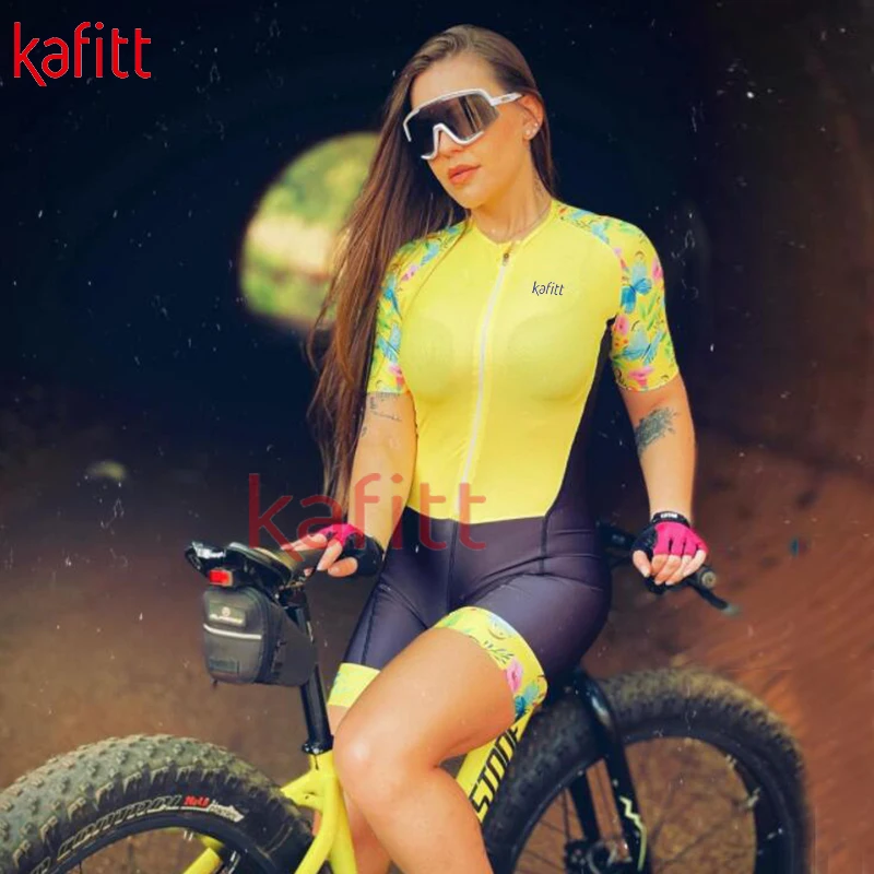 Kafitt Women's Cycling Jersey Summer UV Resistant Stretch Quick Dry Mountain Bike Jersey One Piece Overall Shirt Jumpsuit