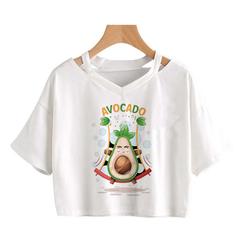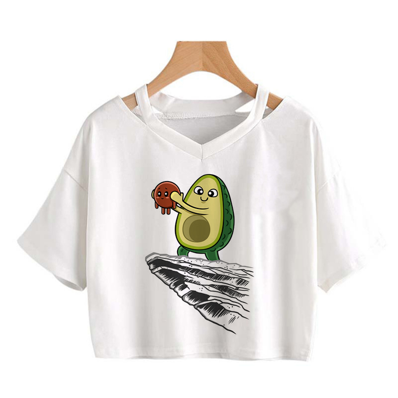 Kawaii Avocado Women T Shirt Harajuku Cute Ullzang T Shirt Funny Cartoon Graphic T-shirt Korean Style Casual Crop Tops Female