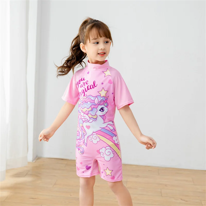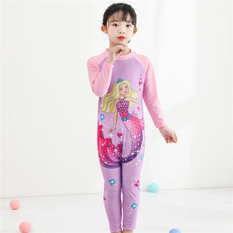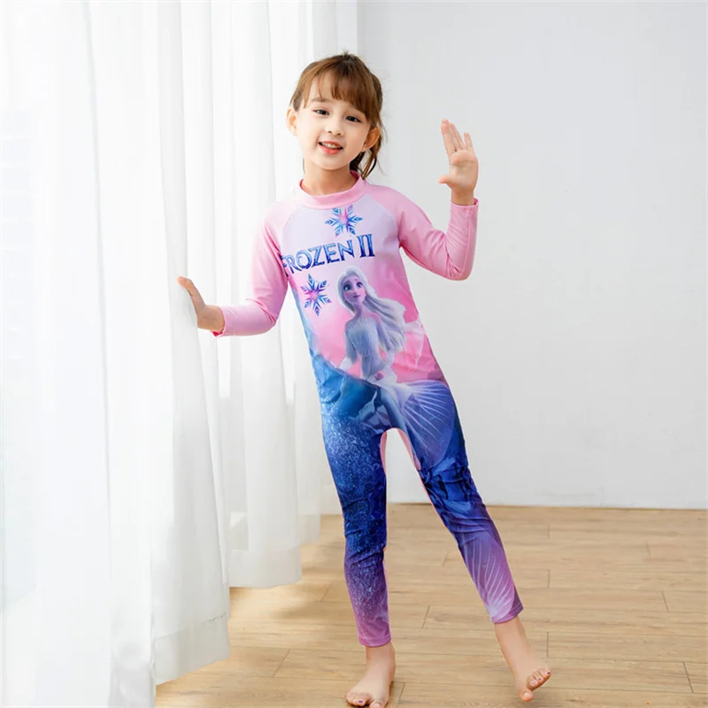 Kids Cute Cartoon Design Swimsuits Girl Princess Elsa Sofia Boys Car Untraman Mickey Mouse Swimwear Kids Beach Long Short Suits