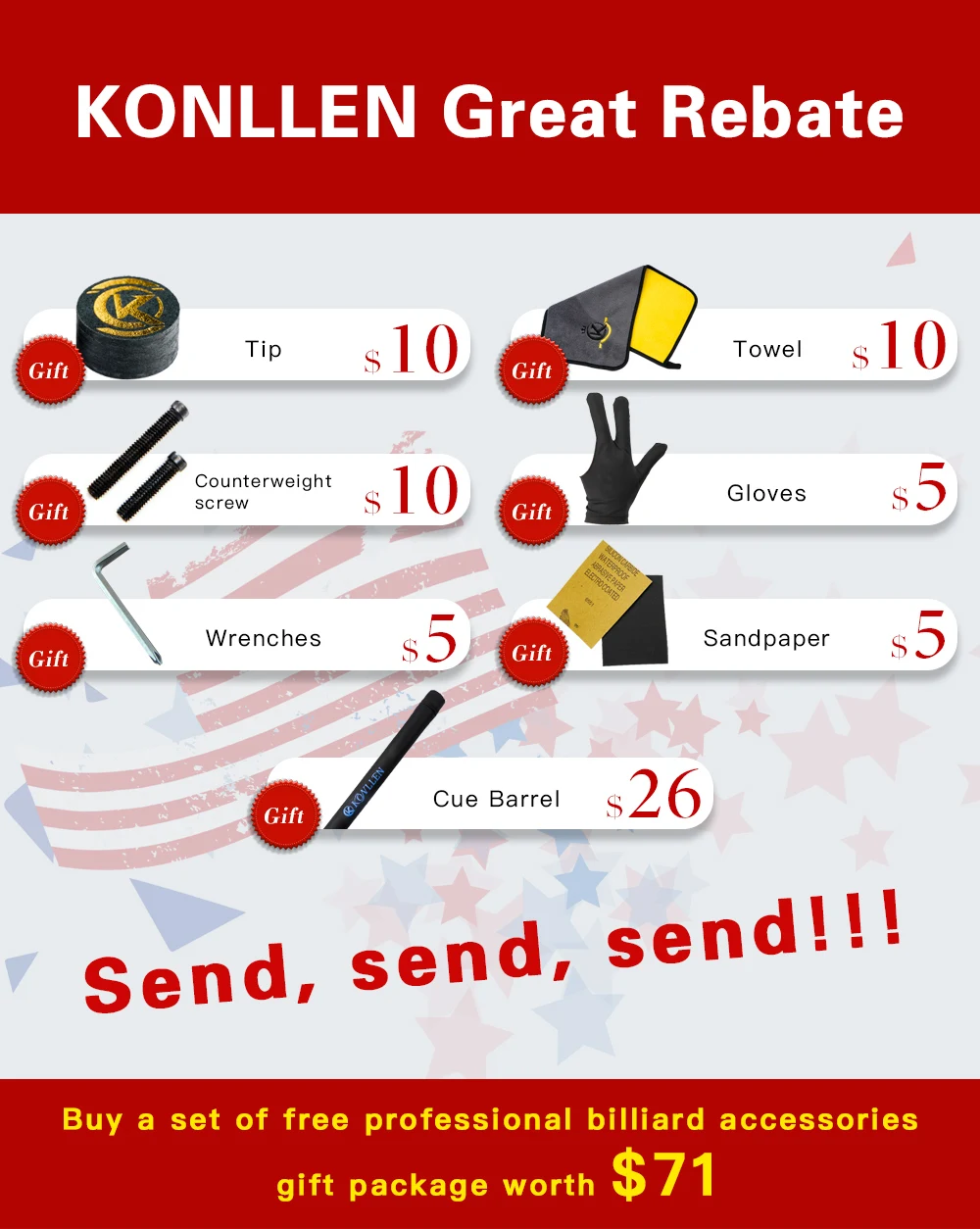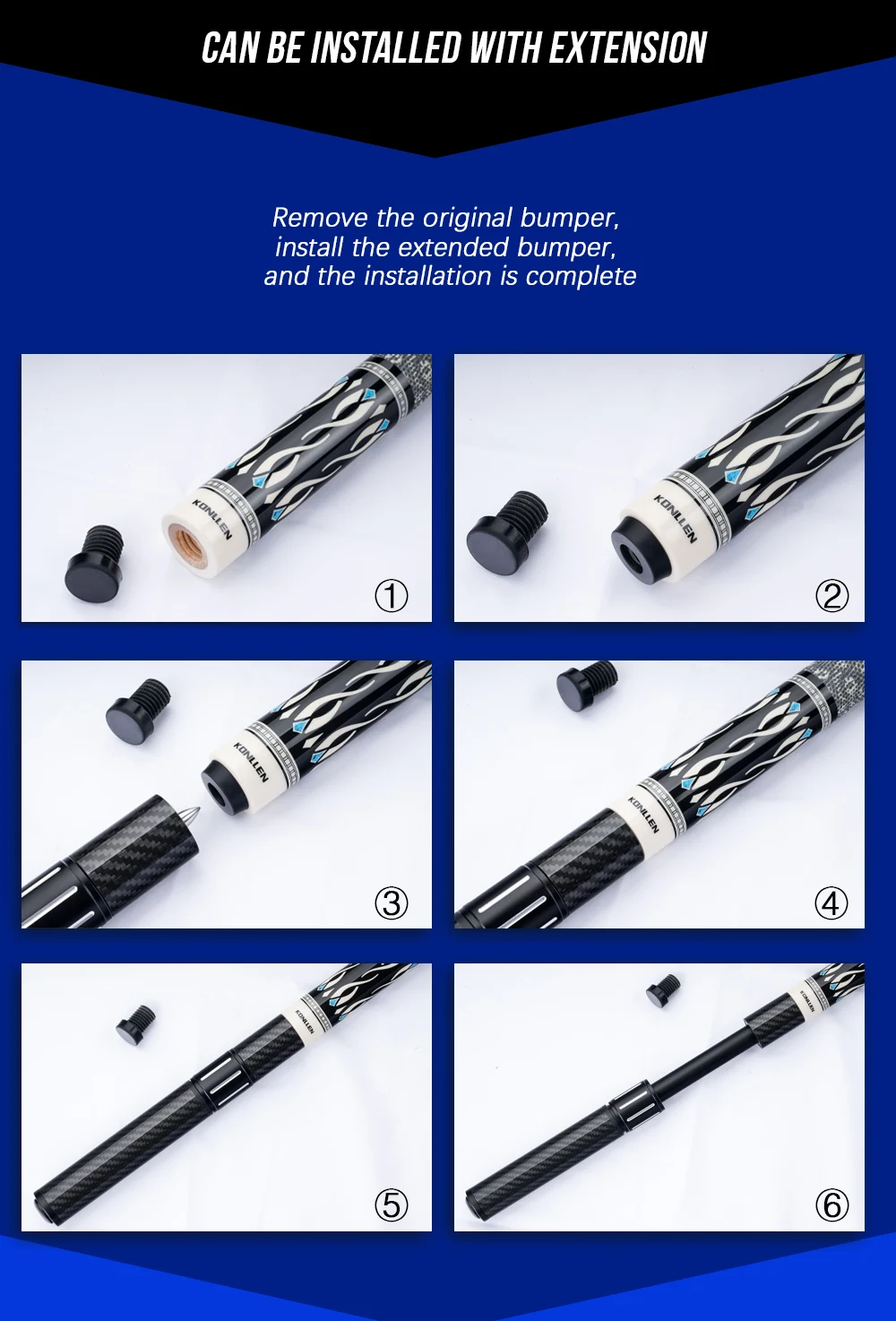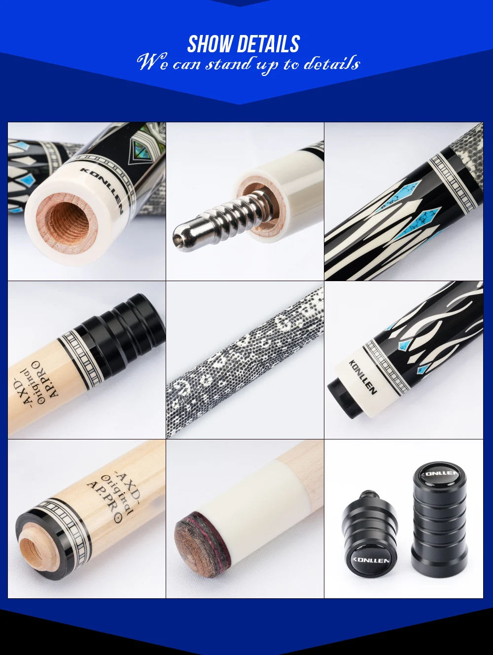 KONLLEN Billiard Pool Cue 13mm Tiger Everest Tip Canadian Maple Shaft Sticks XTC Ferrule 148cm Leather Wrap 3/8*8 Joint Play Cue