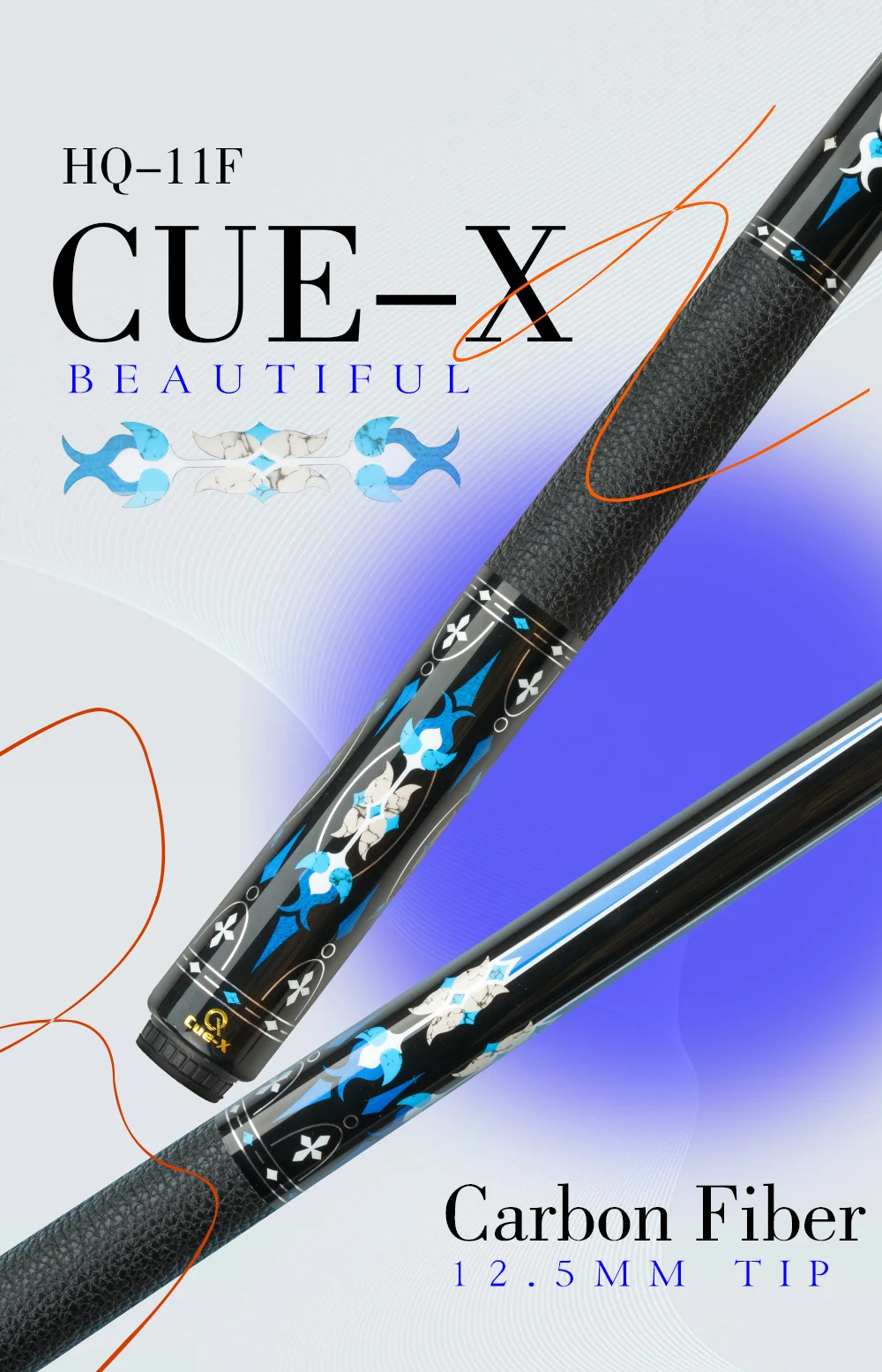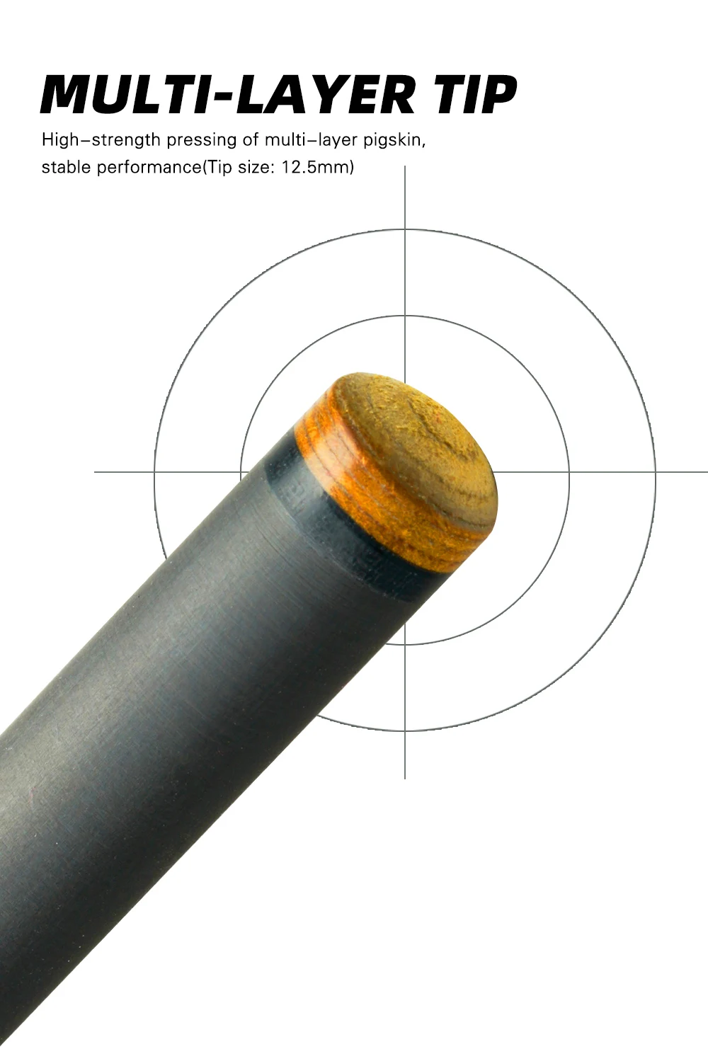 KONLLEN CUE-X HQ-10F Billiard Cue Stick Carbon Fiber Shaft 12.5mm Tip Billiard 3/8*8Radial Pin Joint Leather Wrap Pool Cue Stick