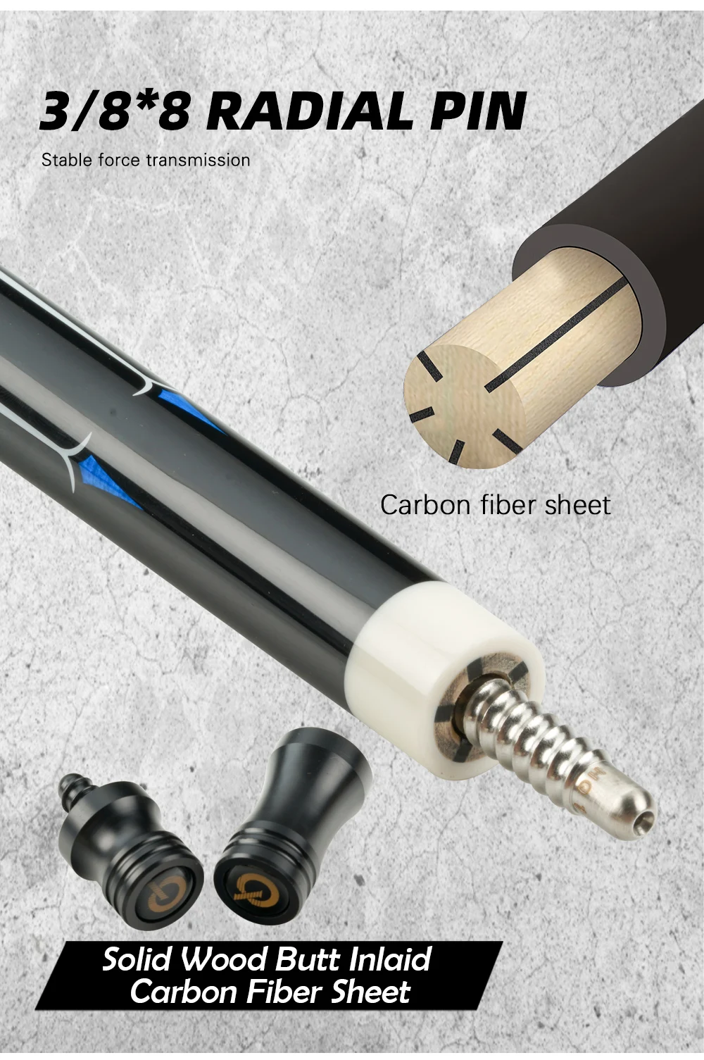 Cue Joint: The black carbon fiber pool cue stick is 3/8 X 8 cue joint, seamless connection.