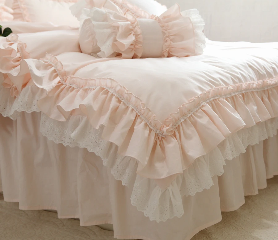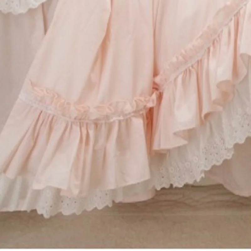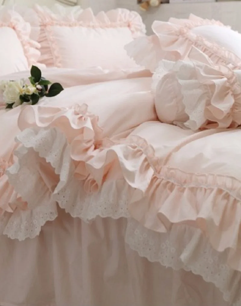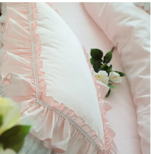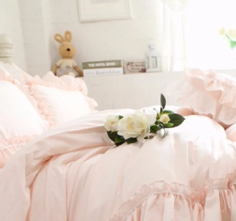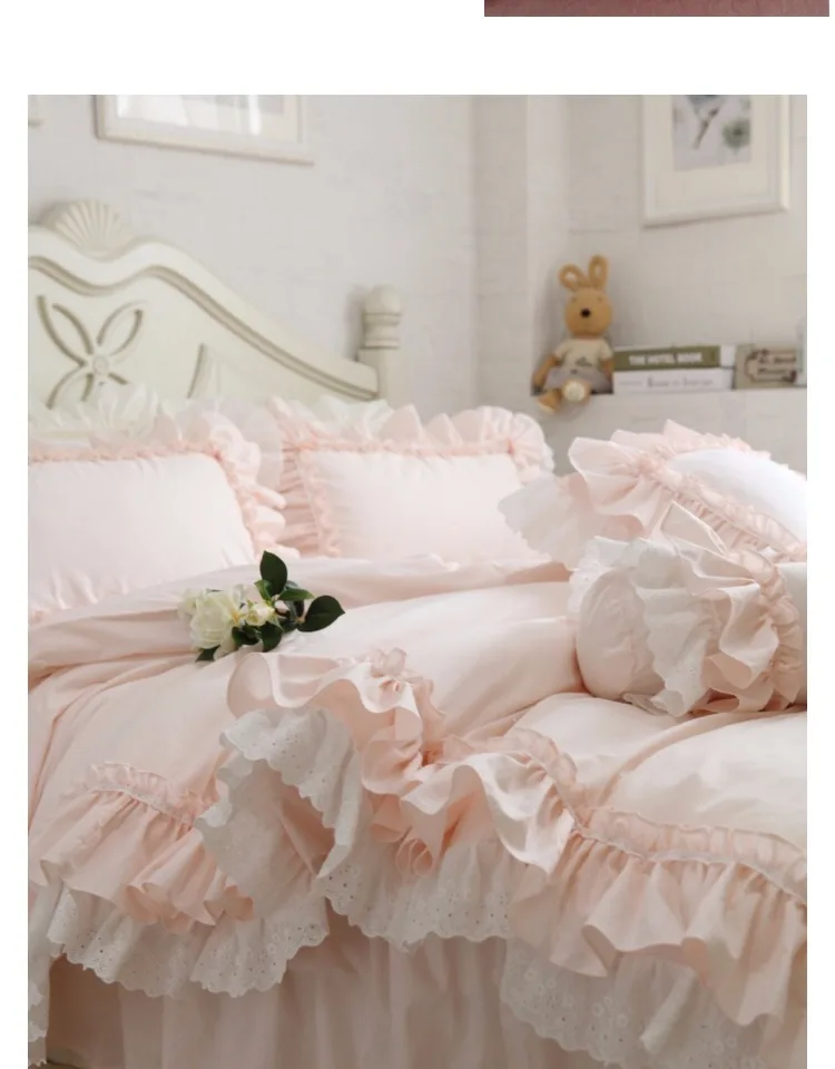 Korean Pure Cotton Pink Luxury Princess Wedding Beding 4pcs Sets King Queensize European Duvetcover Bedskirt Comforter Cover Set