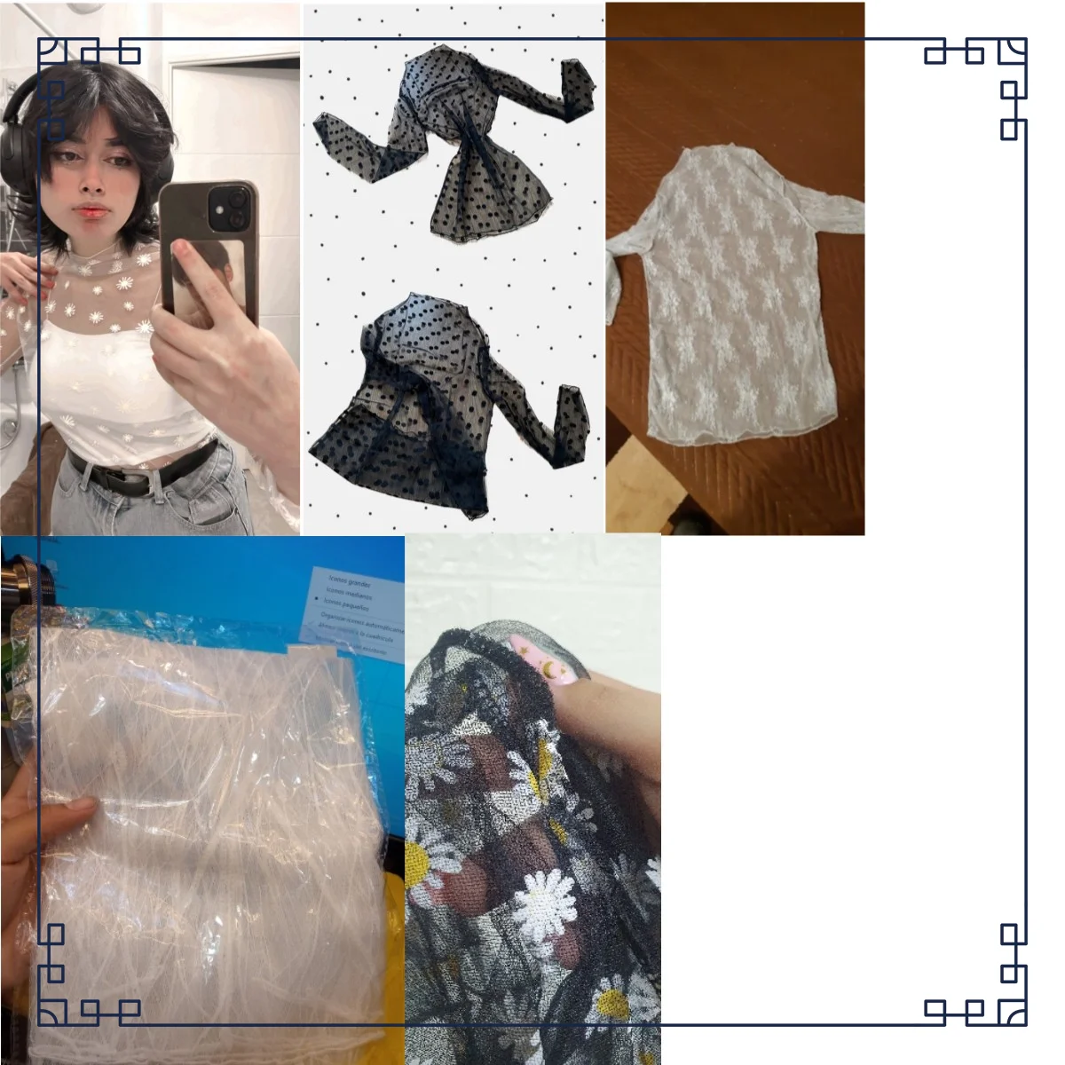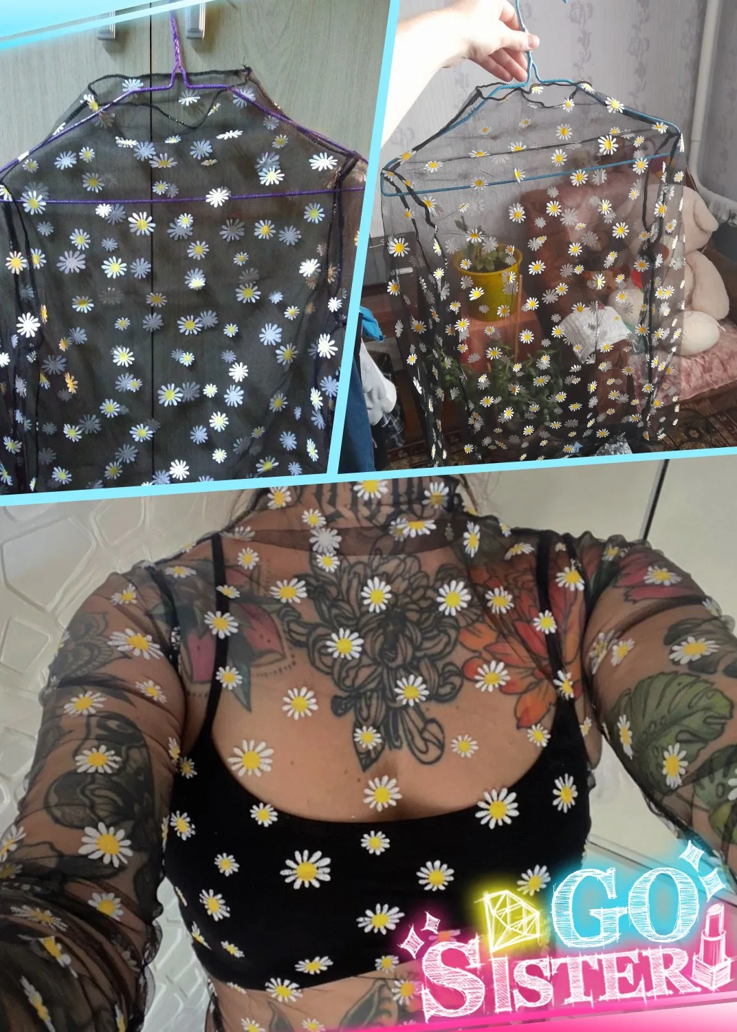 Korean Style MeshT shirt Daisy Under Shirt Sexy New Harajuku Aesthetic Cute Lace Flower T shirt Long Sleeve Mesh Top Transparent