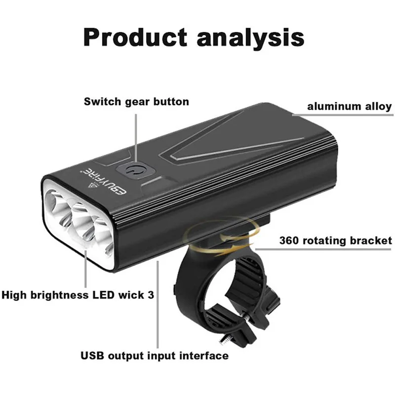 L2/T6 Bicycle Light USB Rechargeable Bike Lights 5200mAh Power Bank Cycling Mtb Lamp Headlight Flashlight Optional Taillight