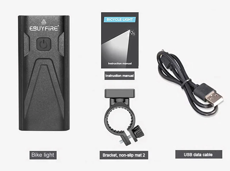 Accessories: Front light, Bracket, USB cable, Manual, Box, Optional taillights