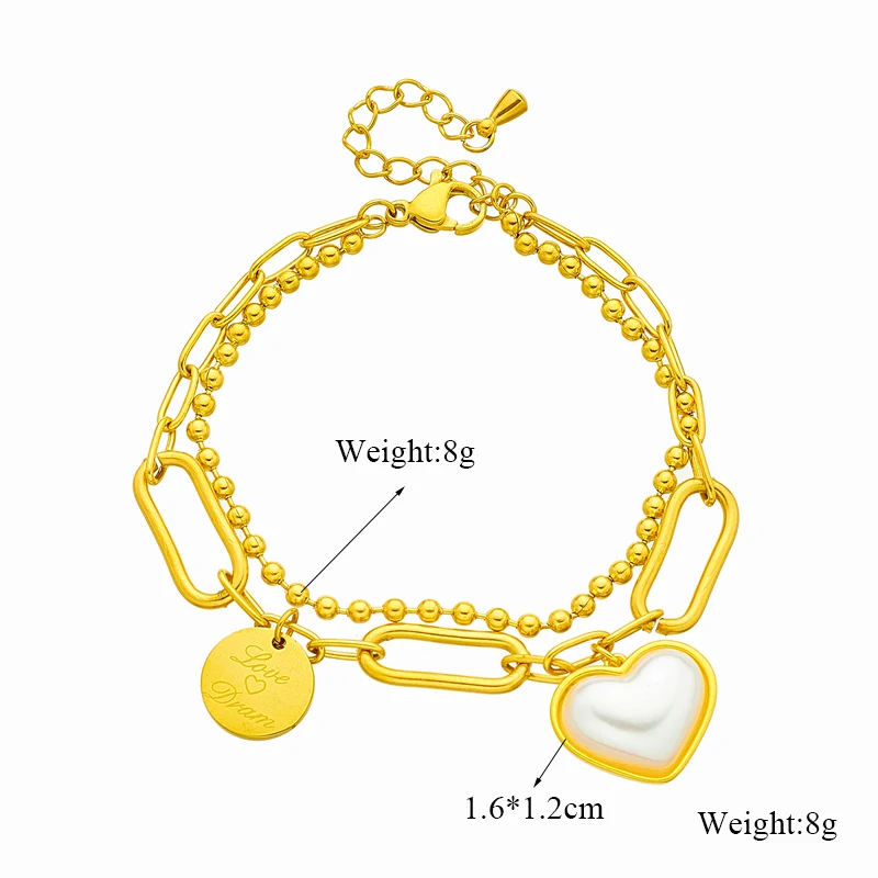 LAMENGLY 316L Stainless Steel Cross Heart Portrait Coin Charm Bracelet For Women Fashion Gold Color Non-fading Jewelry Gifts