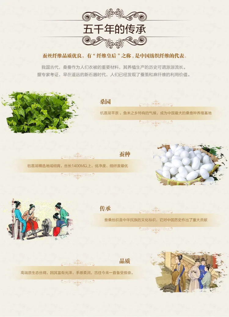 Since ancient times, there are “silk silk Queen” of good reputation. In modern times, people give it a “healthy fiber”, “health care fiber” laudatory name. Therefore, the silk fiber health function is not any fiber can not be compared, alternative. Silk contains 18 kinds of amino acids necessary for human body, contain amino acids of human skin with not much difference between. It is human “second skin” the laudatory name. To wear silk clothes, not only can prevent ultraviolet radiation, preventing harmful gas invasion, resistance to harmful bacteria, but also can enhance the surface activity of skin cells, promote skin cells the new supersedes the old. At the same time, has a good role of adjuvant therapy for some skin diseases. In addition, because of the special moisture absorption and permeability, and regulate body temperature, regulating the role of water.