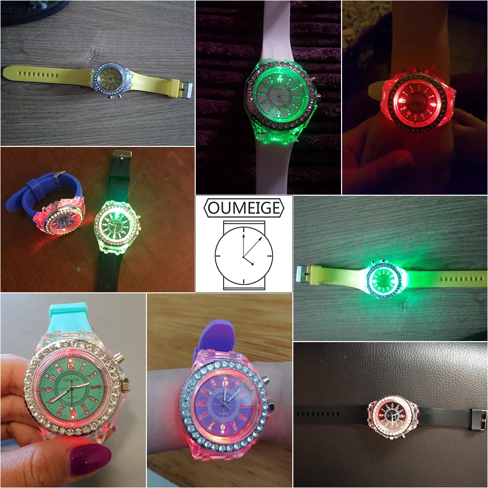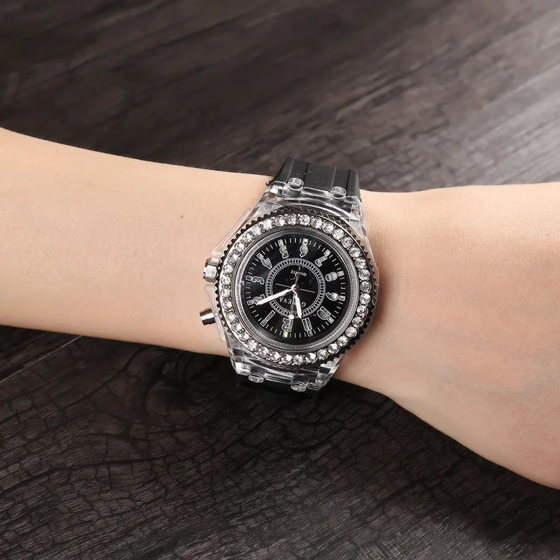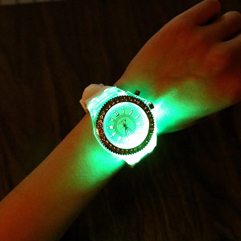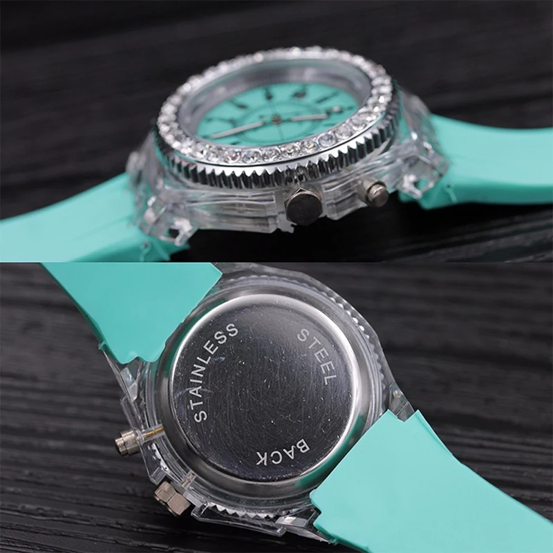 Feature 1 : Flash Luminous LED Light Feature 2 : Soft Silicone Watch Band Feature 3 : With Rhinestone Around the dial Fit for : Gifts, Party, Promotion and etc